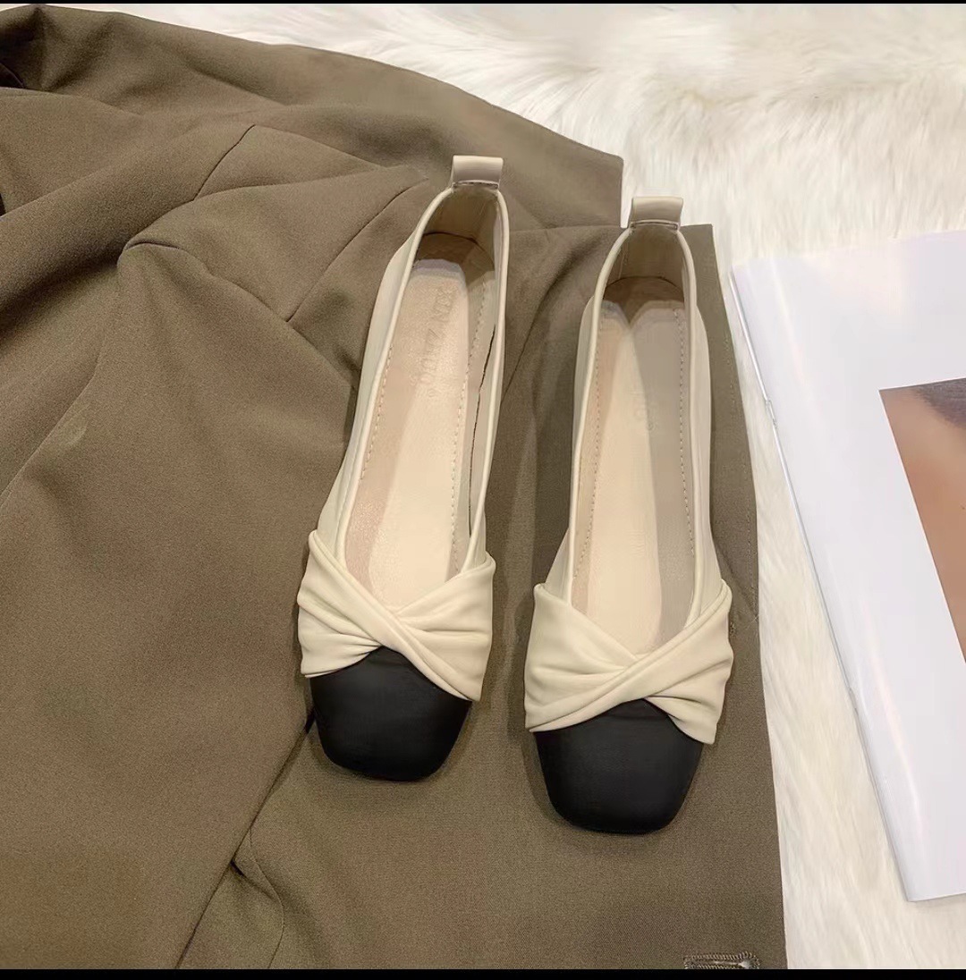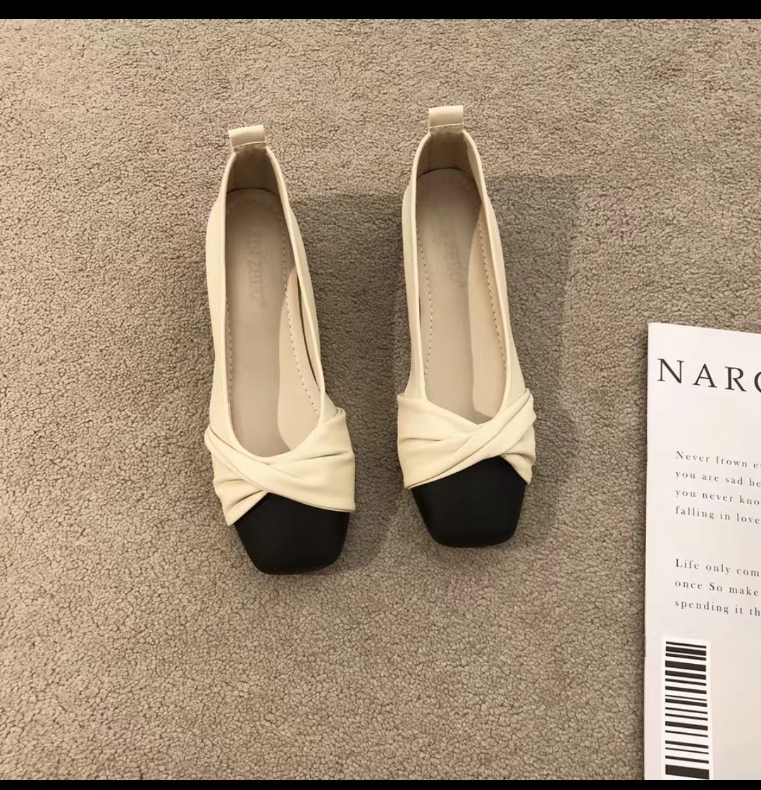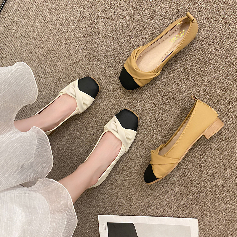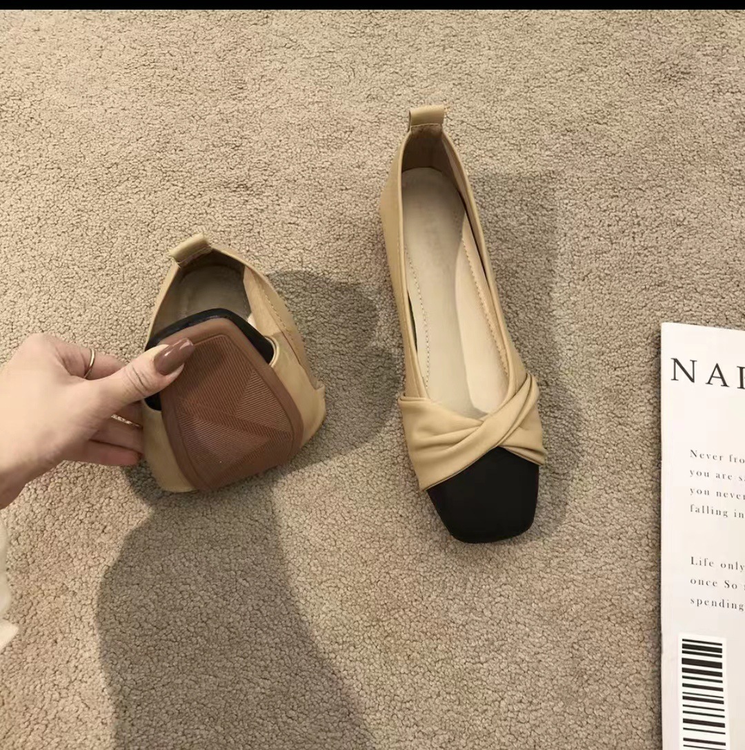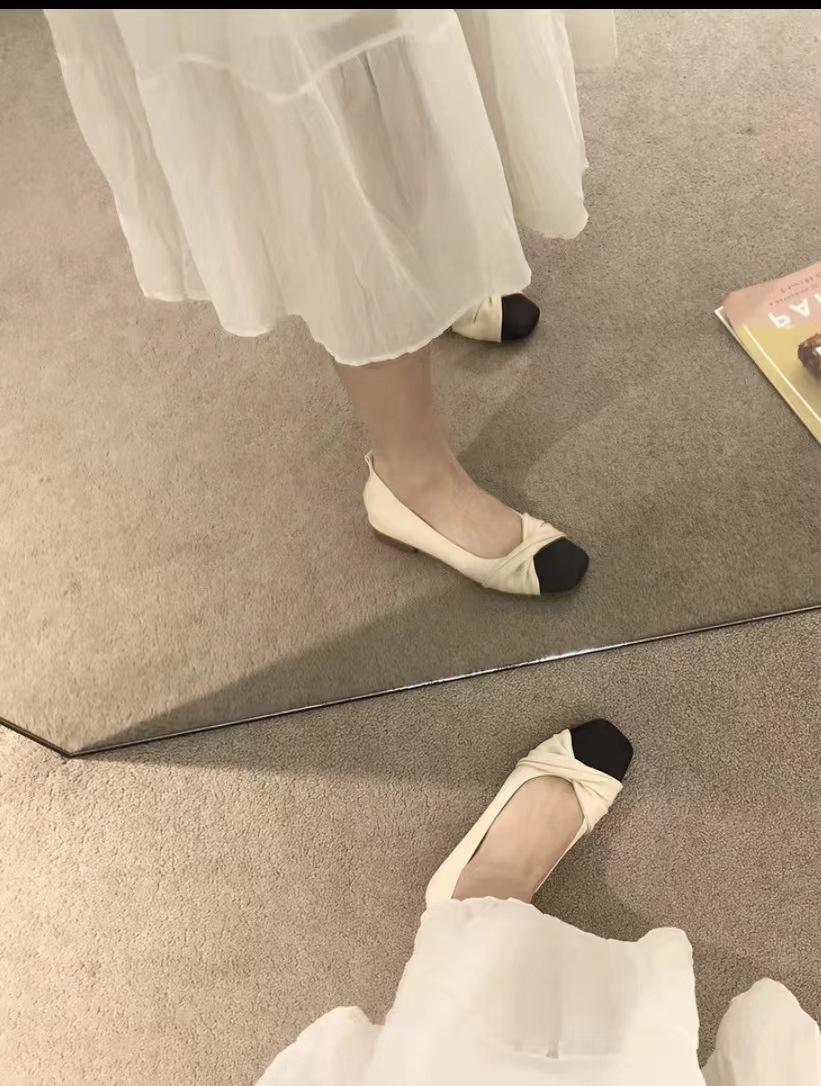 新款超软豆豆鞋懒人浅口方头玛丽珍鞋法式小香风浅口平底休闲