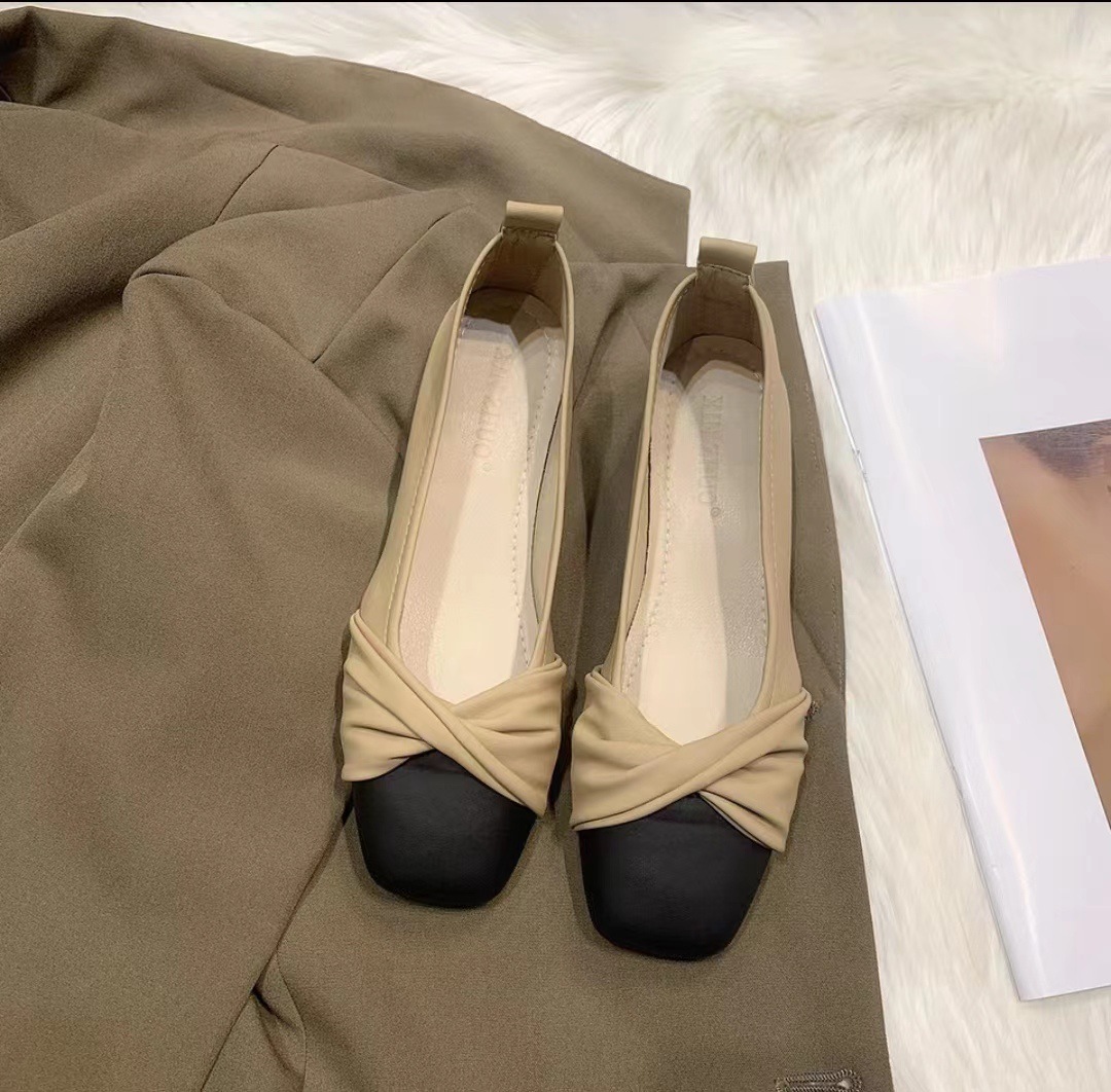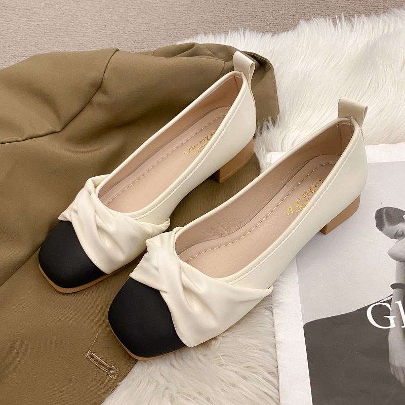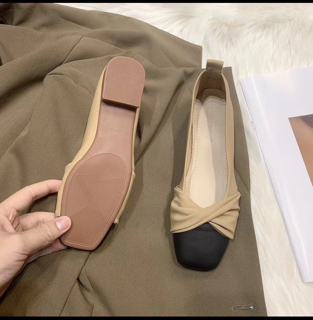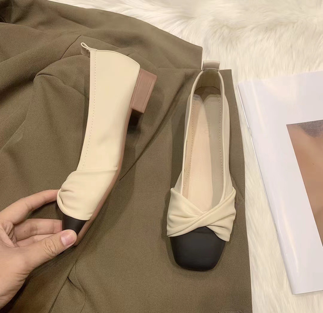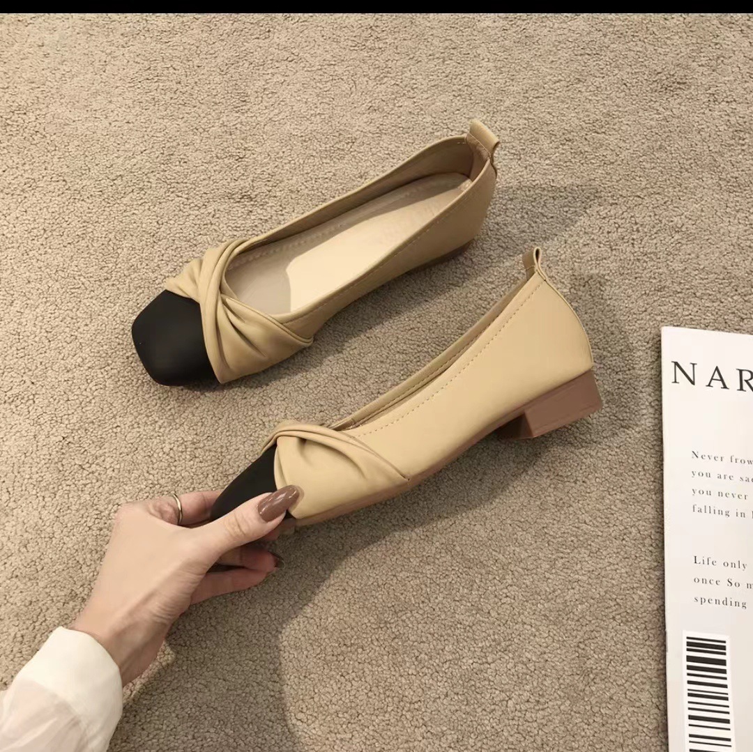 新款超软豆豆鞋懒人浅口方头玛丽珍鞋法式小香风浅口平底休闲
