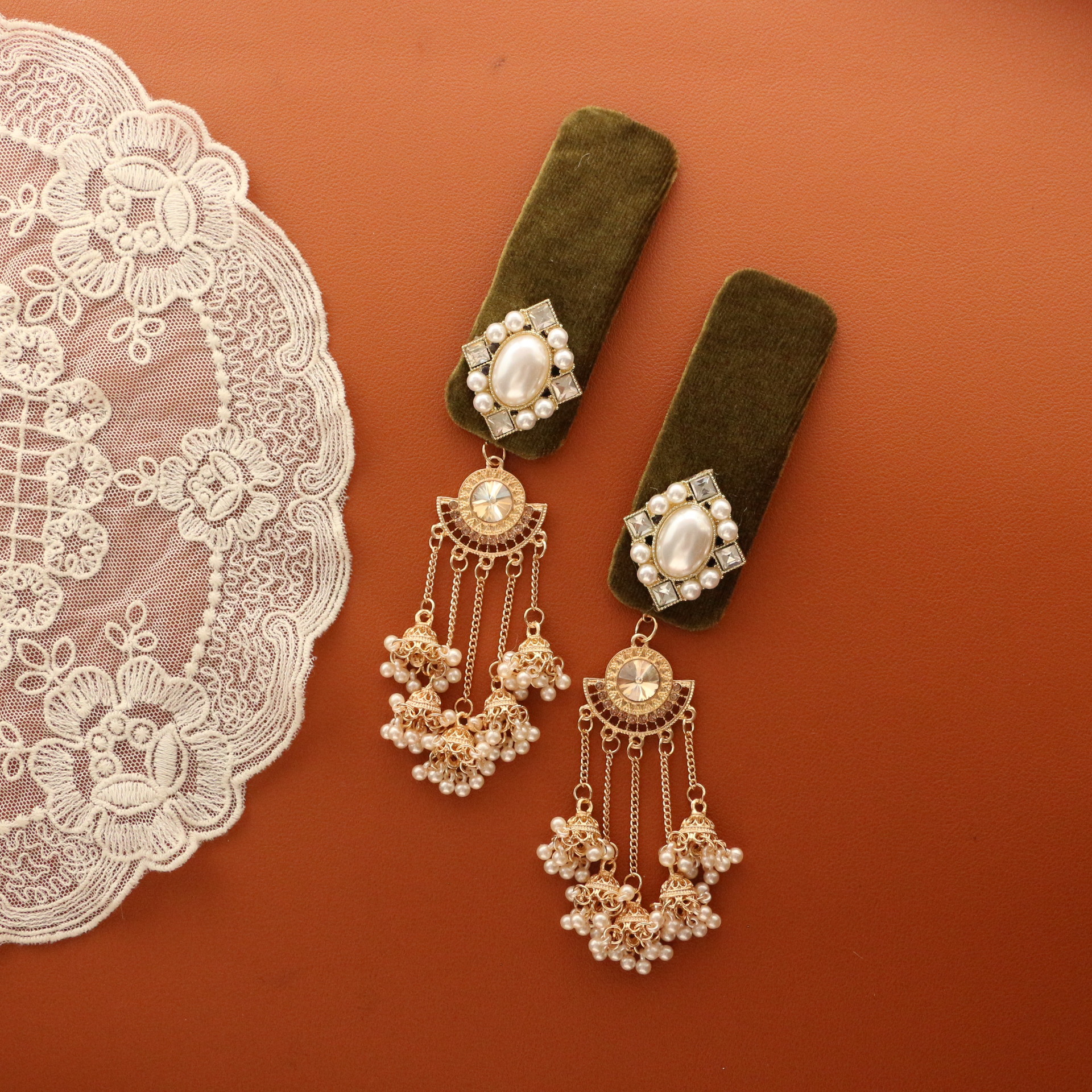 复古丝绒黛绿雍容华贵发夹流苏拜拜夹气质刘海夹国风头饰