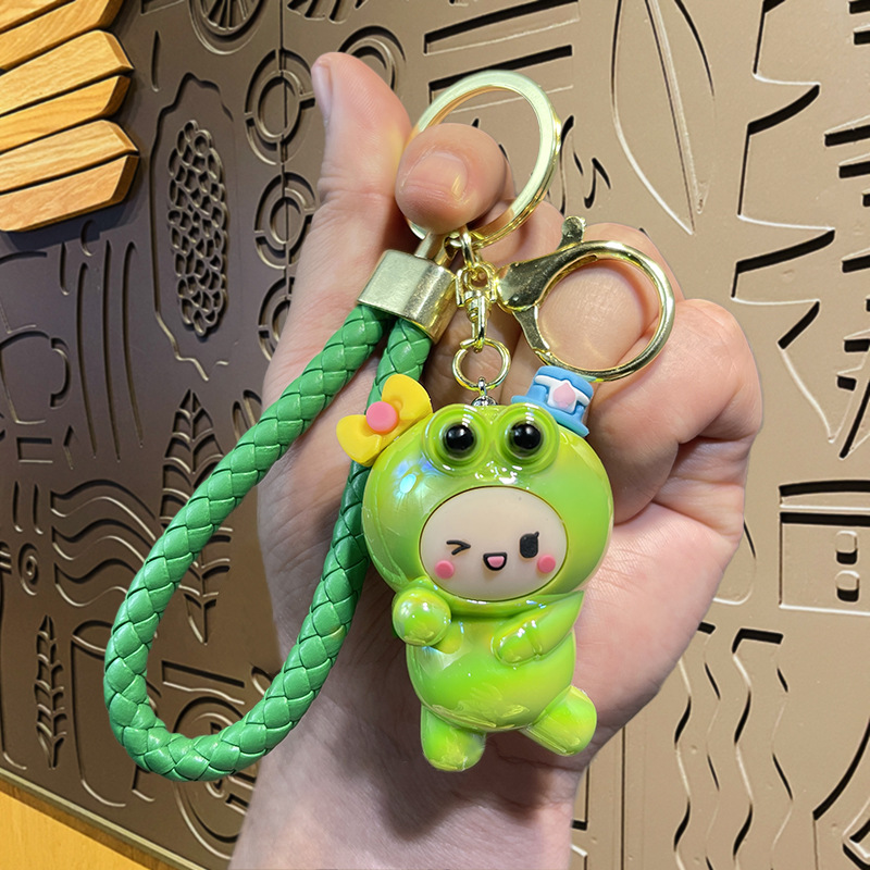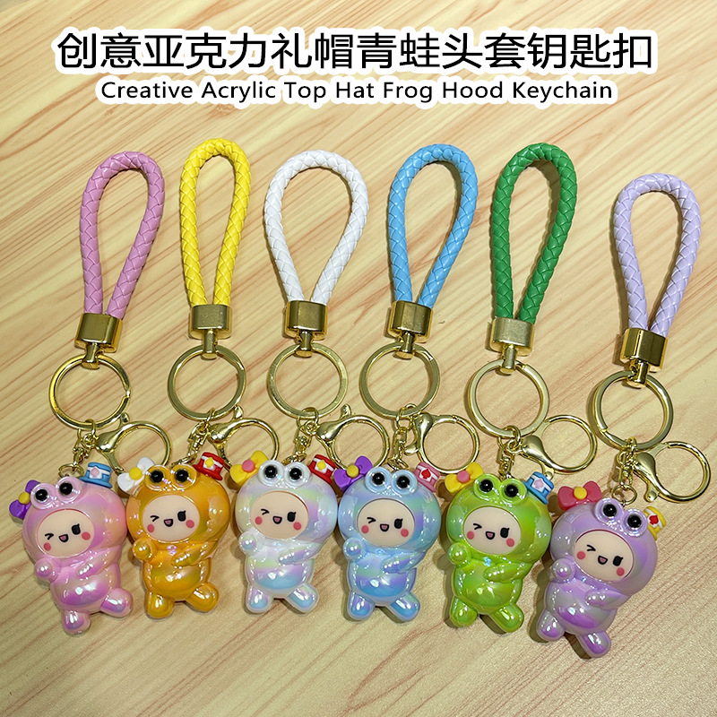 网红创意卡通可爱亚克力青蛙头套钥匙扣挂件汽车背包小礼品