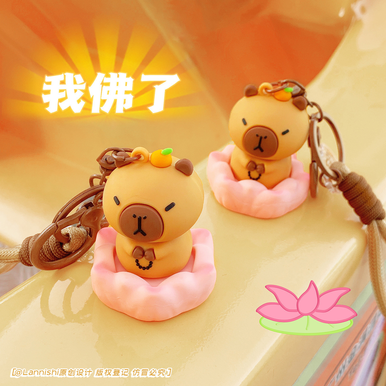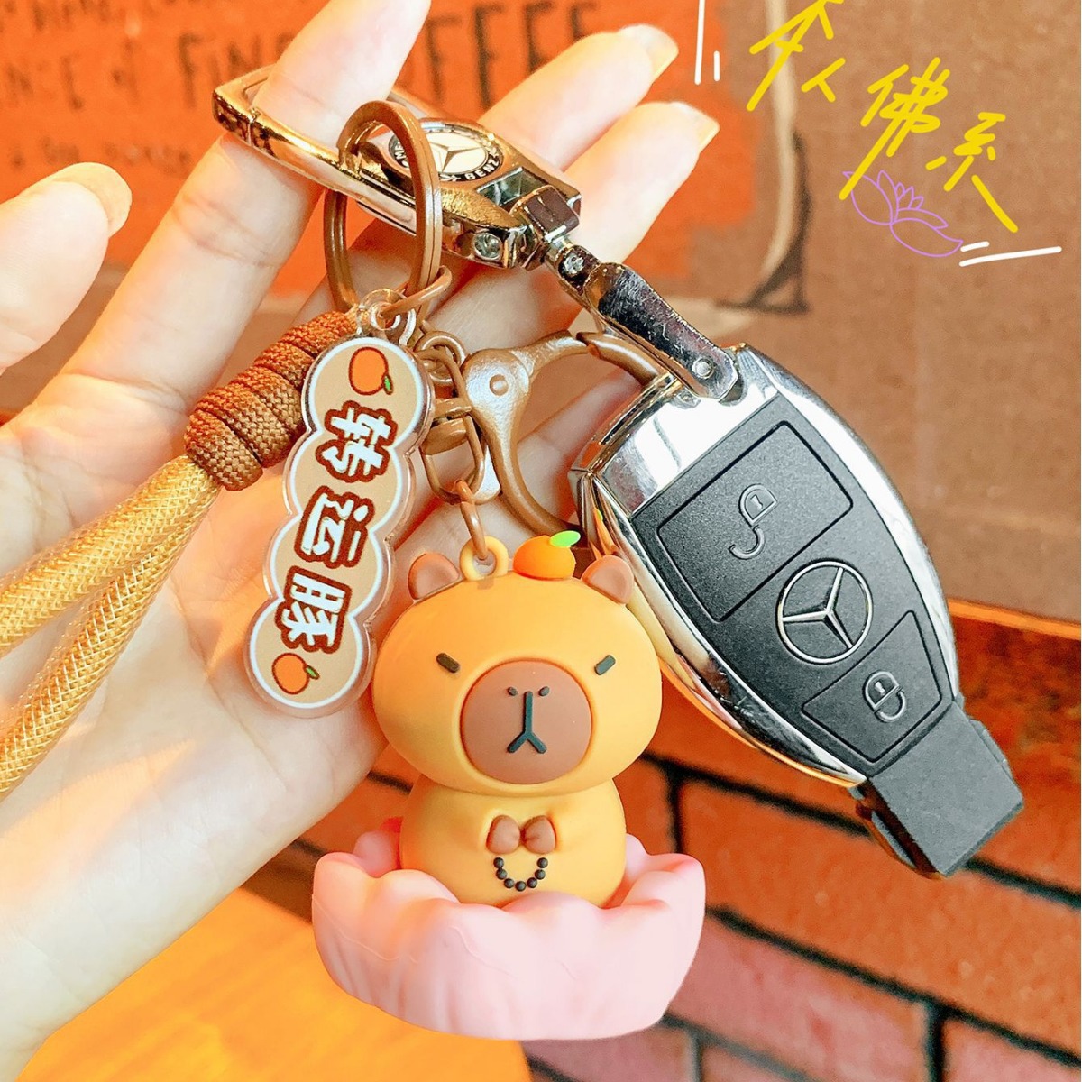 卡皮巴拉转运佛系水豚君钥匙扣包包挂件汽车钥匙链网红创意小饰品
