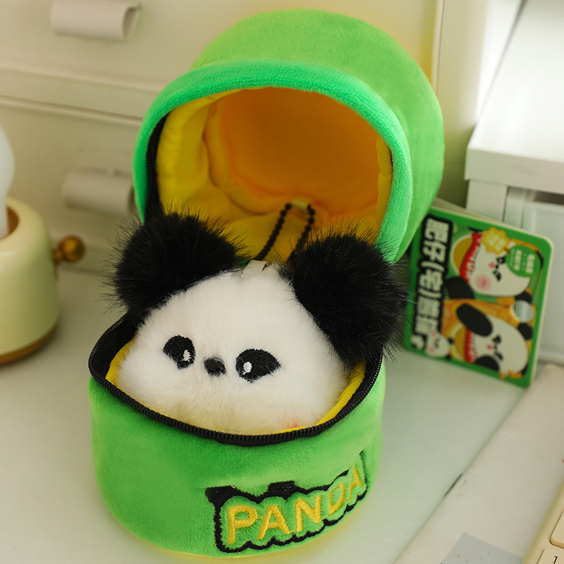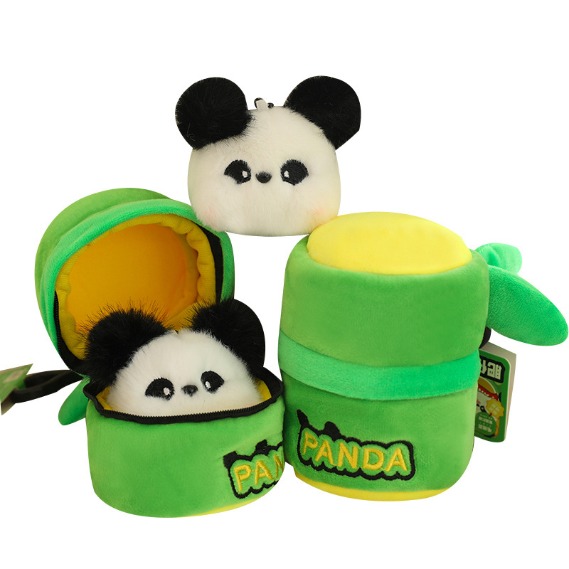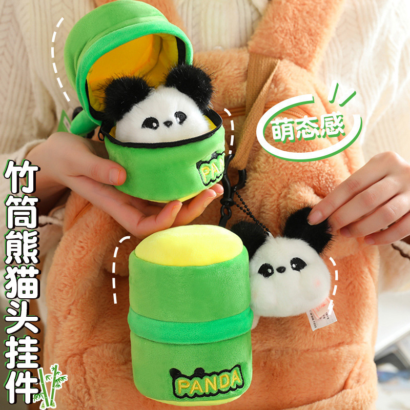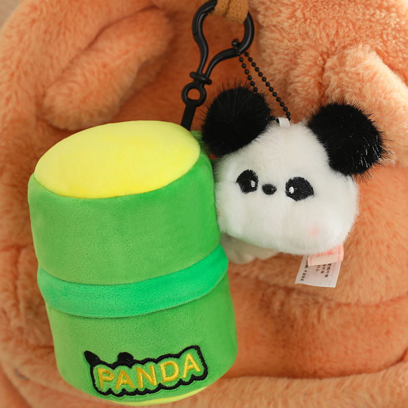 可爱竹筒熊猫钥匙扣创意毛绒熊猫公仔挂件批发大熊猫花花挂饰
