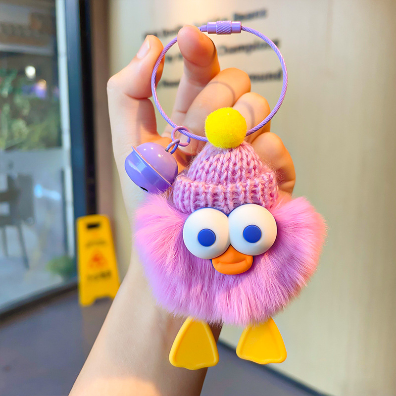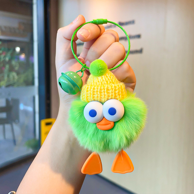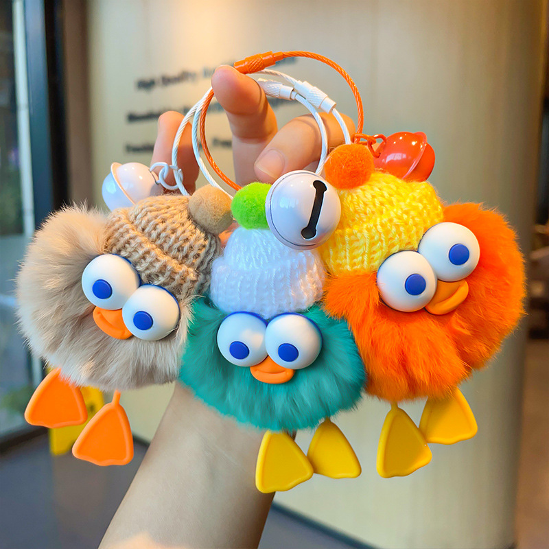 可爱真獭兔毛小鸭子汽车钥匙扣挂件毛绒公仔玩偶小煤球书包包挂饰