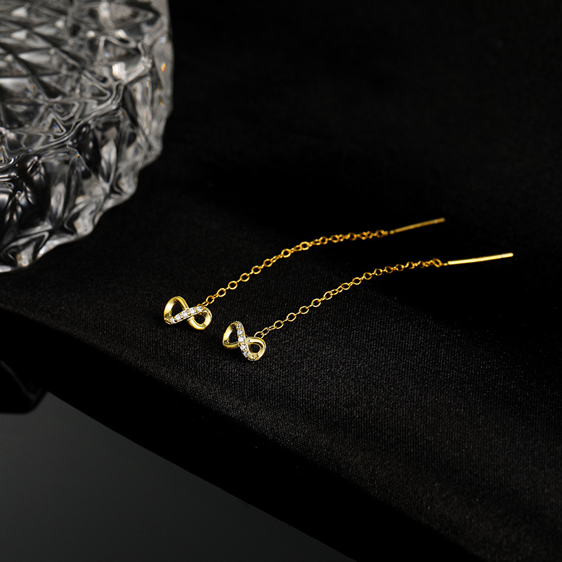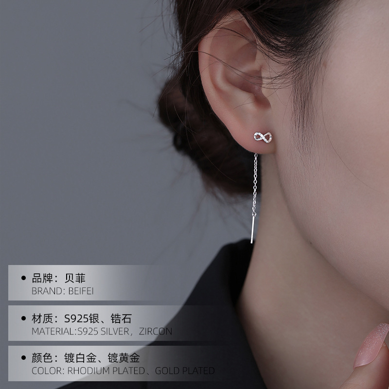 S925银8字形流苏耳环女轻奢气质高级感小众耳饰简约精致镶钻耳线
