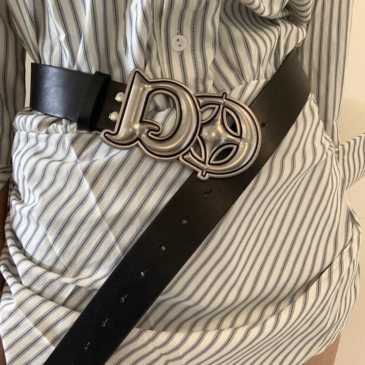 复古百搭银色DQ字母扣皮革皮带简约宽版工装牛仔配饰装饰带潮