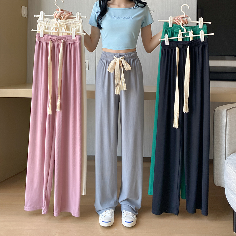 冰丝运动阔腿裤女高腰垂感春秋新款夏季宽松直筒休闲裤
