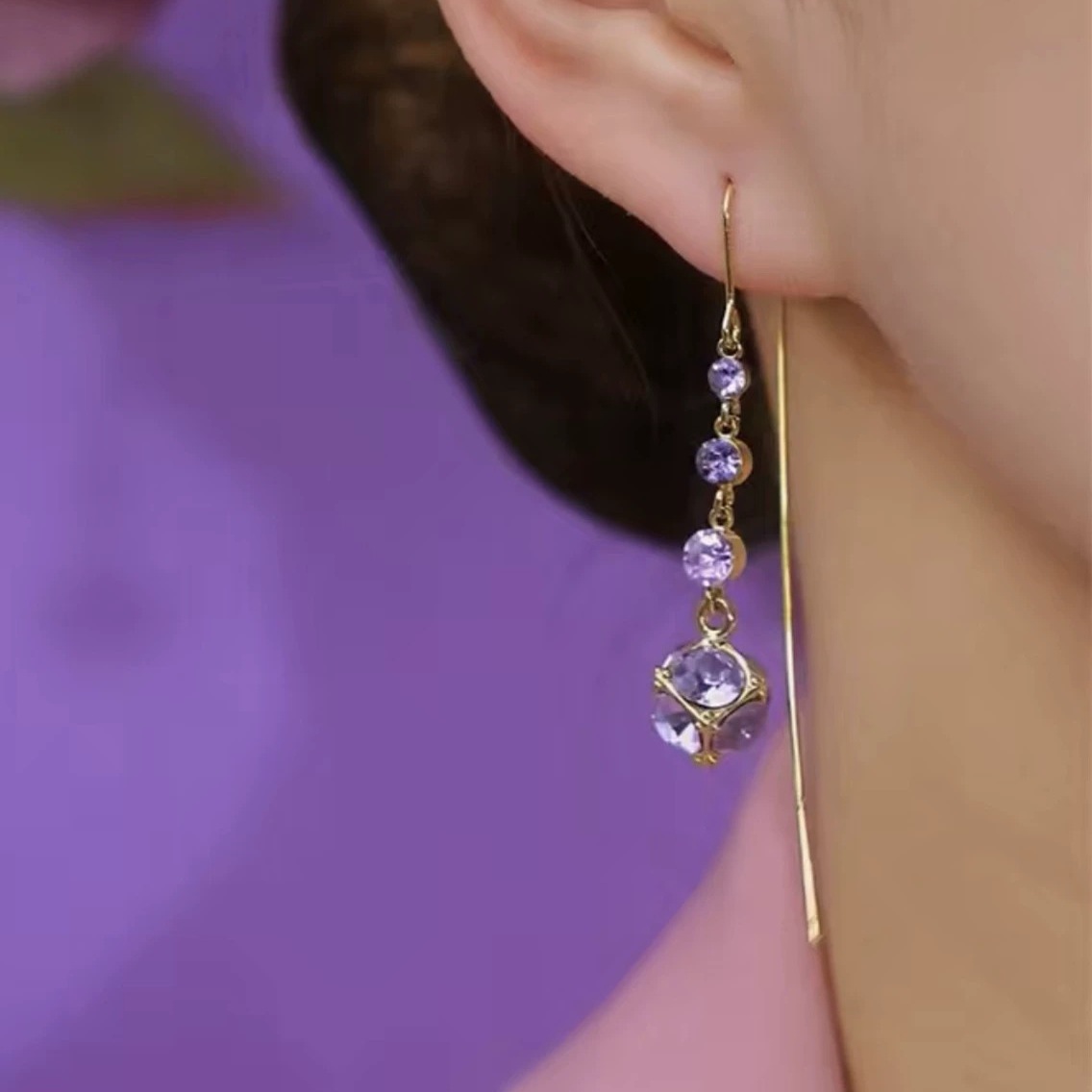 耳线流苏新款爆款长款耳饰紫色水钻独特设计小众高级感耳环
