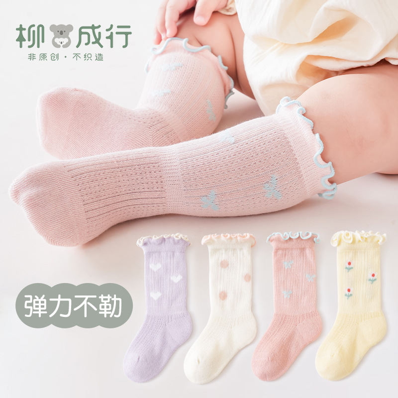 春夏新品薄款宝宝中筒袜网眼可爱木耳花边婴幼儿无骨松口袜