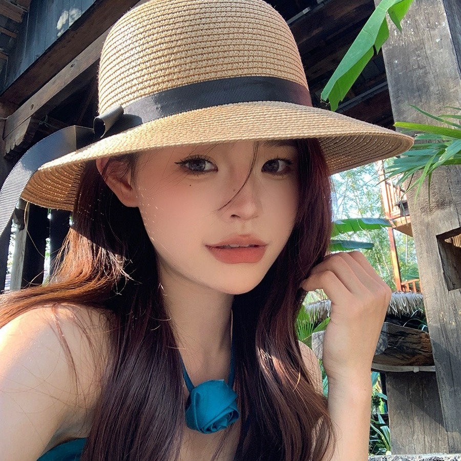 大檐遮阳防晒草帽海边女新款春夏季蝴蝶结草编沙滩度假防晒帽