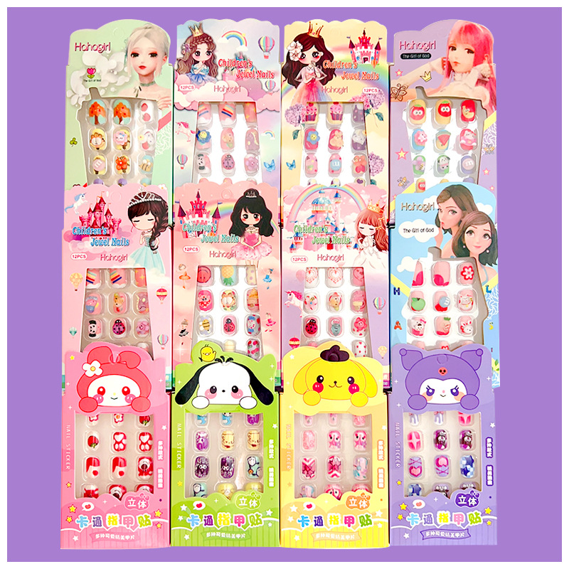 韩版可爱卡通儿童穿戴甲三丽鸥库洛米猫咪假指甲3D立体儿童美甲