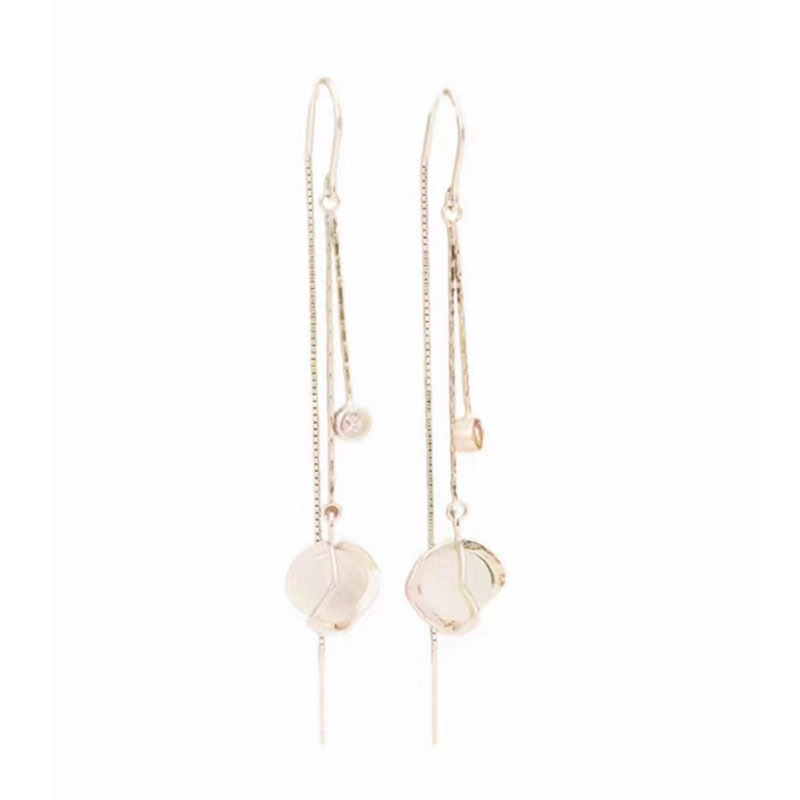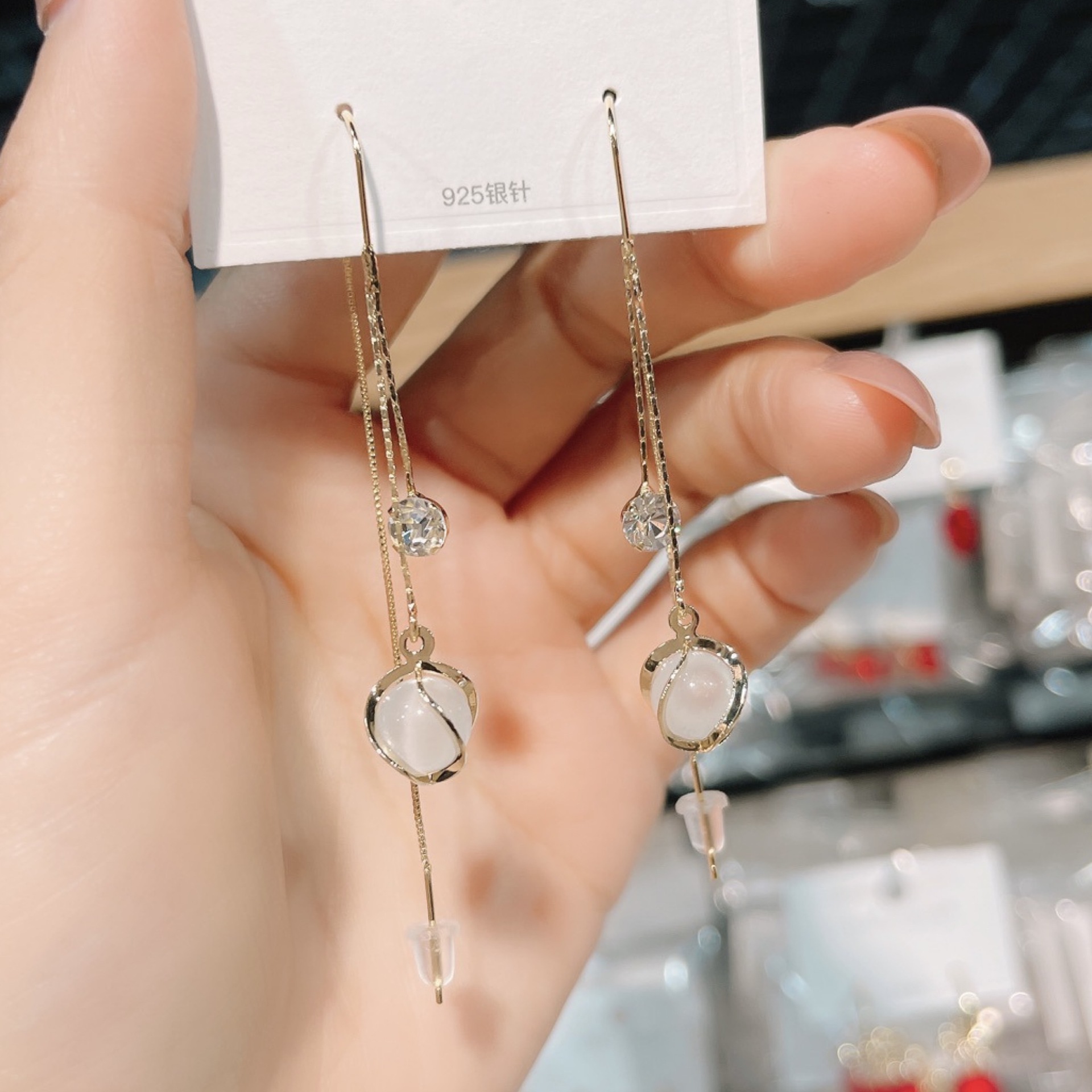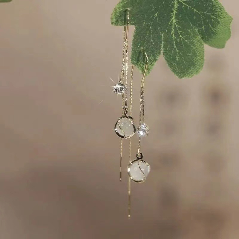 猫眼石流苏耳线年新款潮耳链超仙长款耳环轻奢小众设计感耳饰