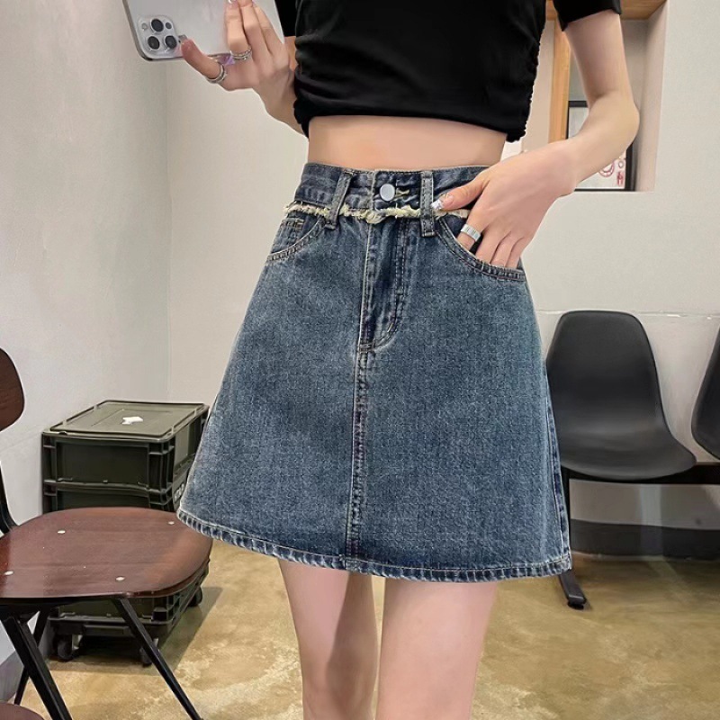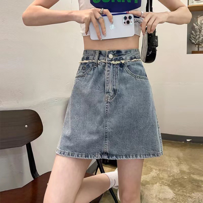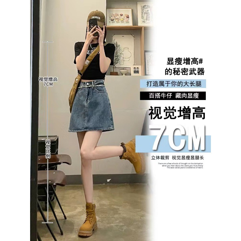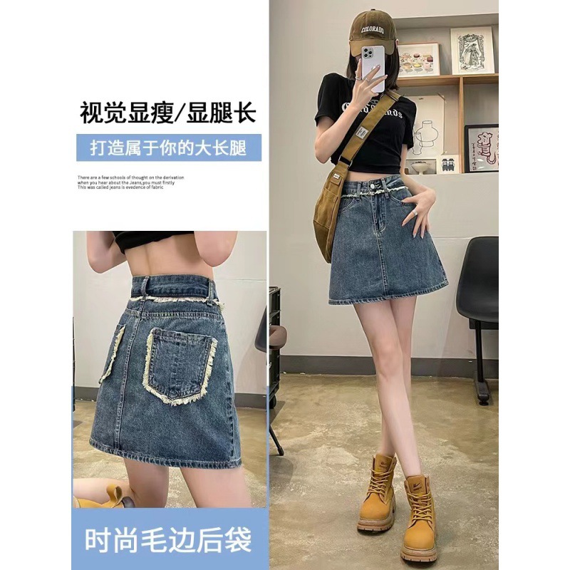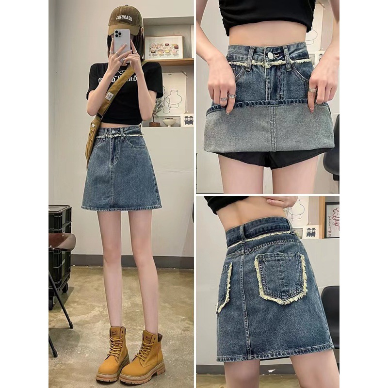 春夏新款带内衬半身裙女显瘦高腰百搭开叉牛仔短裙穿搭a字裙