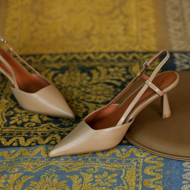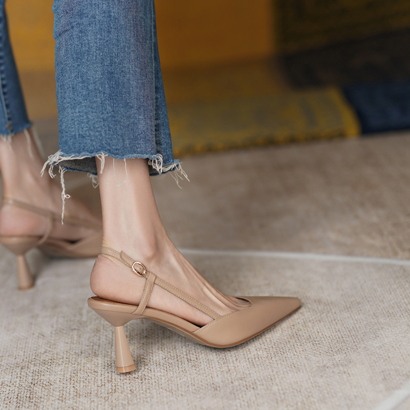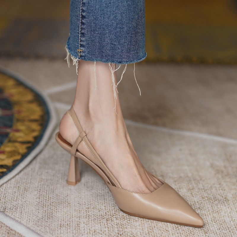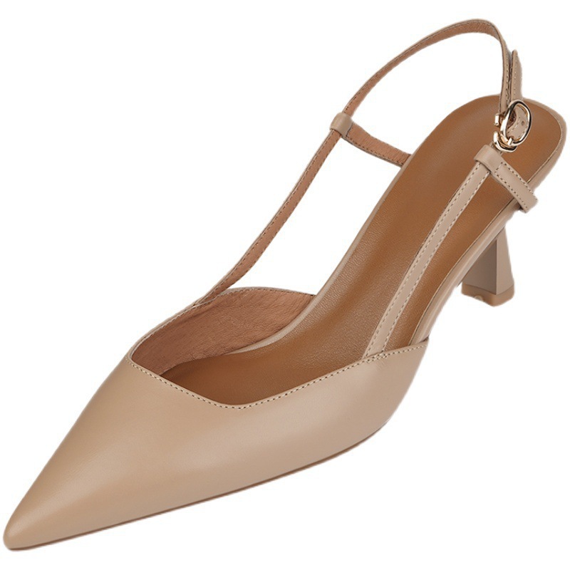 法式气质高跟后空单鞋女新款尖头细跟女鞋一字扣带包头凉鞋女