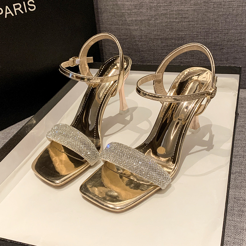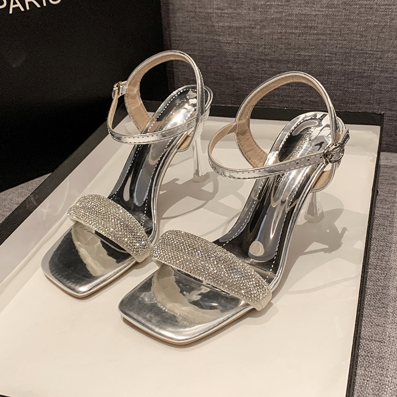 时装凉鞋韩版时尚舒适新款鱼嘴露趾水钻一字扣带细高跟凉鞋女