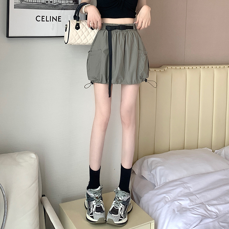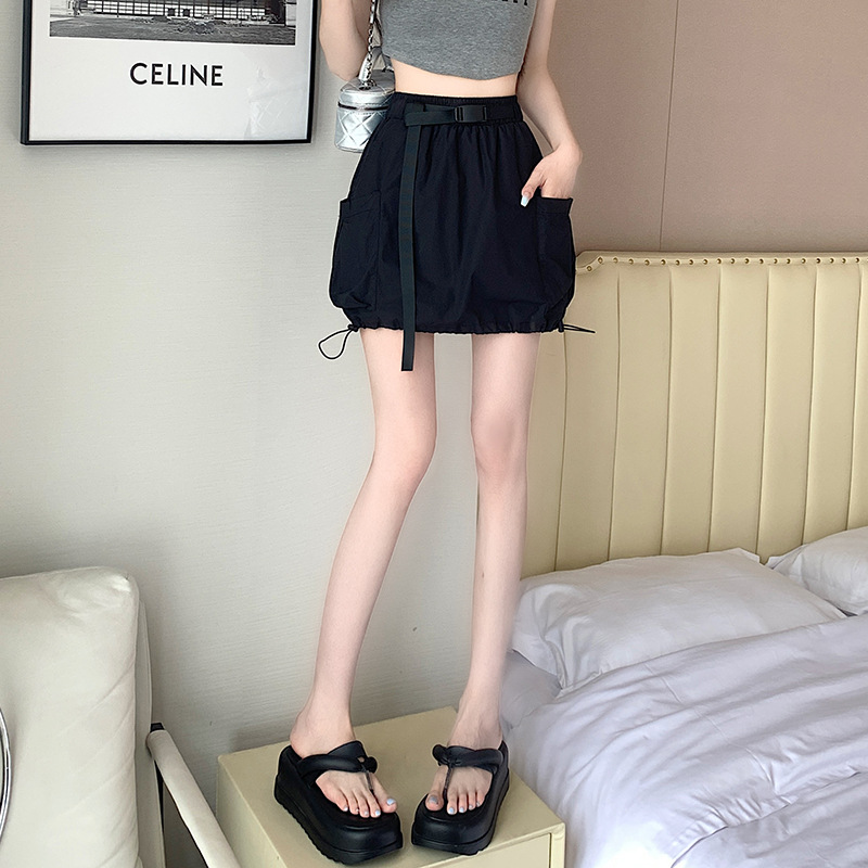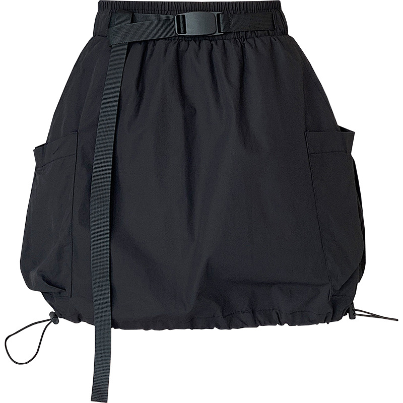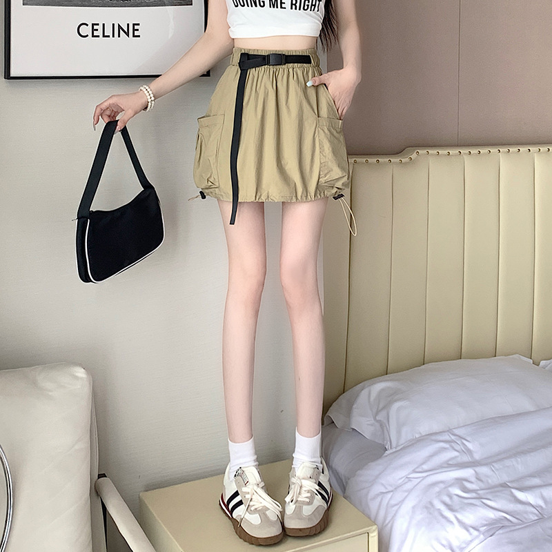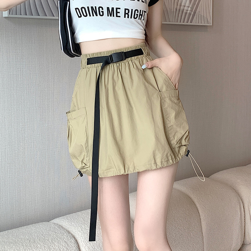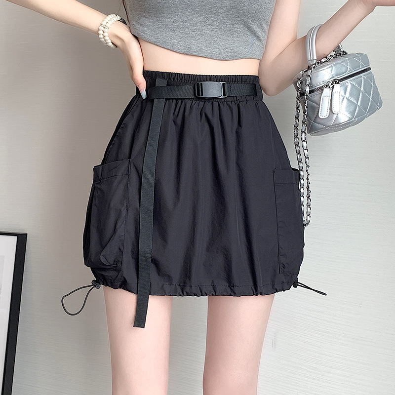 实拍 夏季新款大口袋工装半身裙女松紧腰抽绳显瘦防走光A字裙