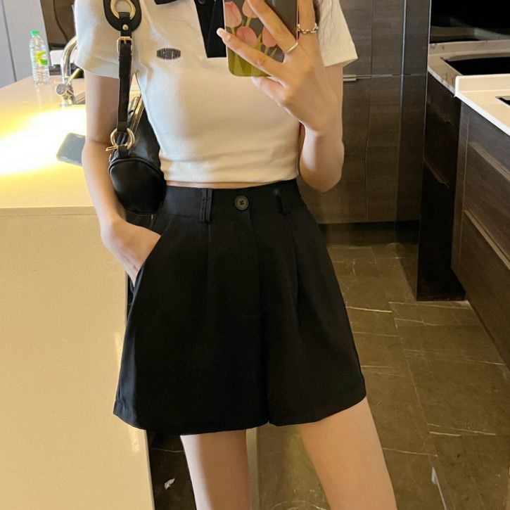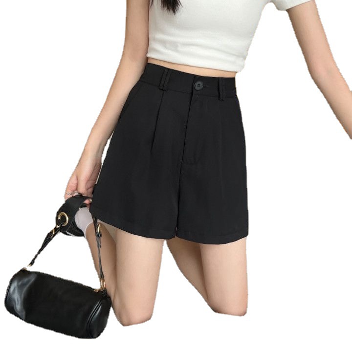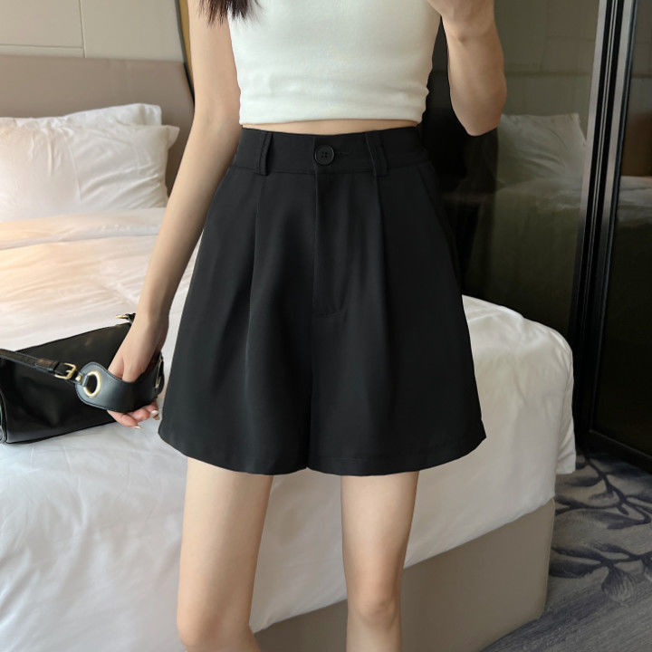 夏季新款大码胖mm阔脚裤女高腰外穿显瘦A字短裤黑色休闲热裤