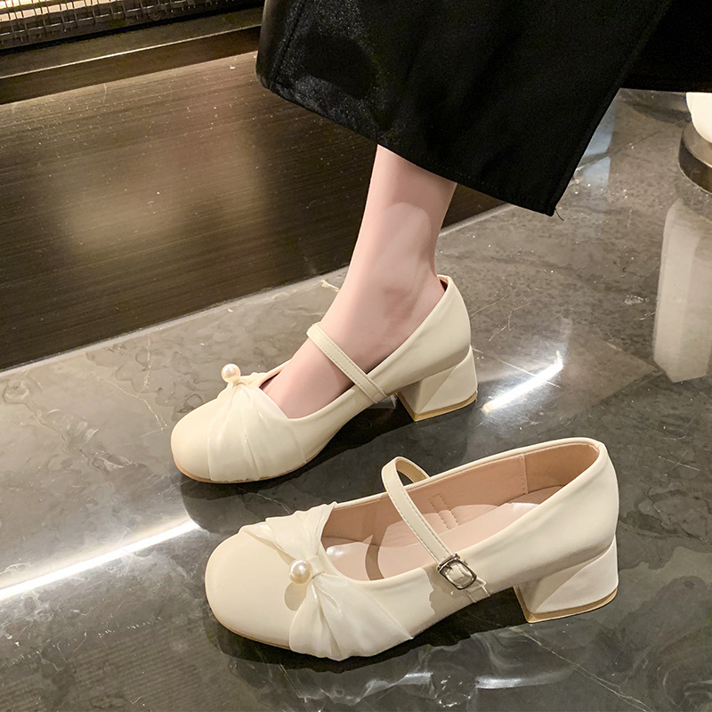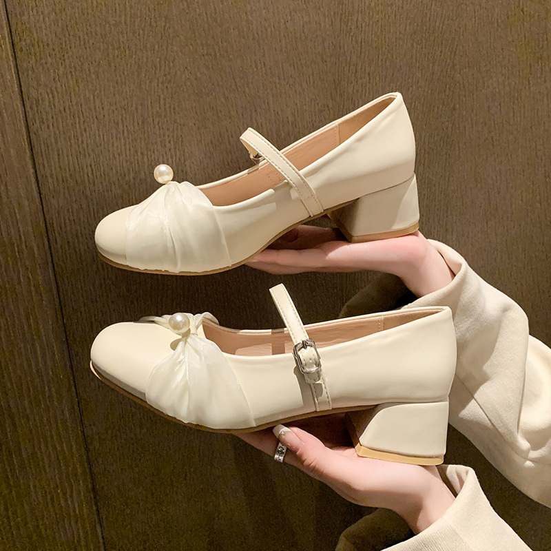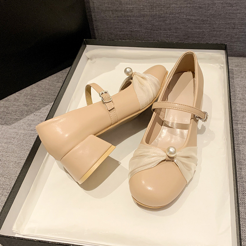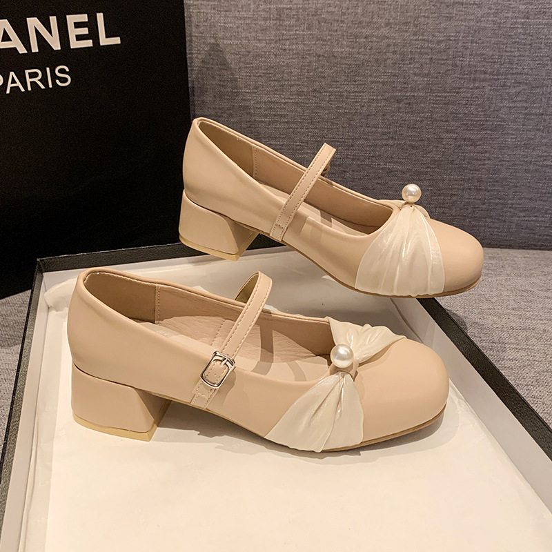 温柔配裙子小香风玛丽珍女鞋春秋季新款粗跟浅口气质高跟鞋女