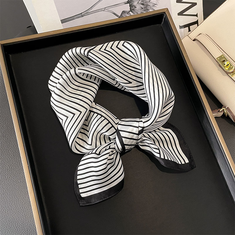 黑白回字纹53*53cm真丝小方巾职业百搭配饰桑蚕丝小领巾丝巾
