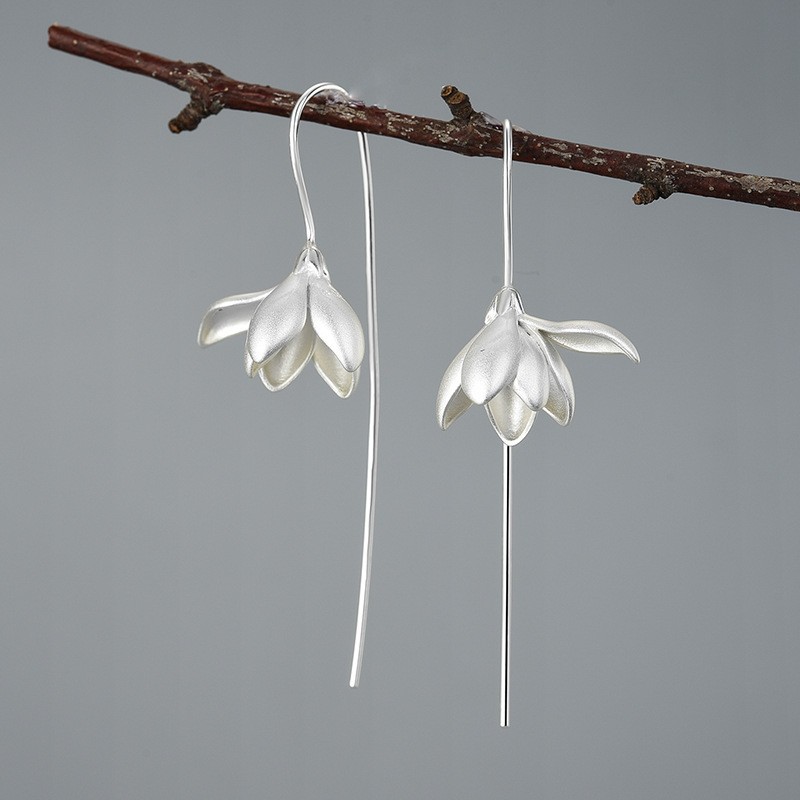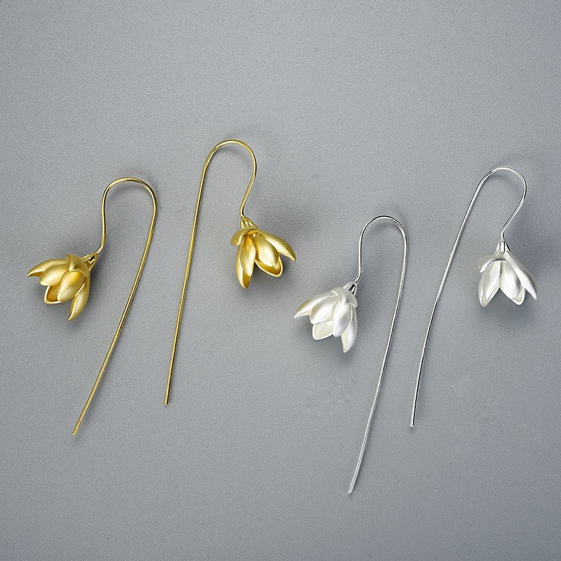 玉兰花开镀金镀银文艺清新长耳环耳钉耳线女复古国风百搭饰品礼物