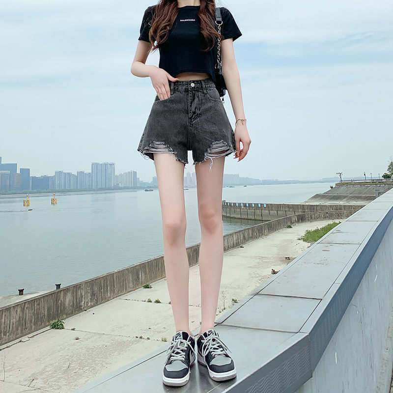 破洞牛仔短裤女新款夏季薄款高腰显瘦网红辣妹a字超短热裤