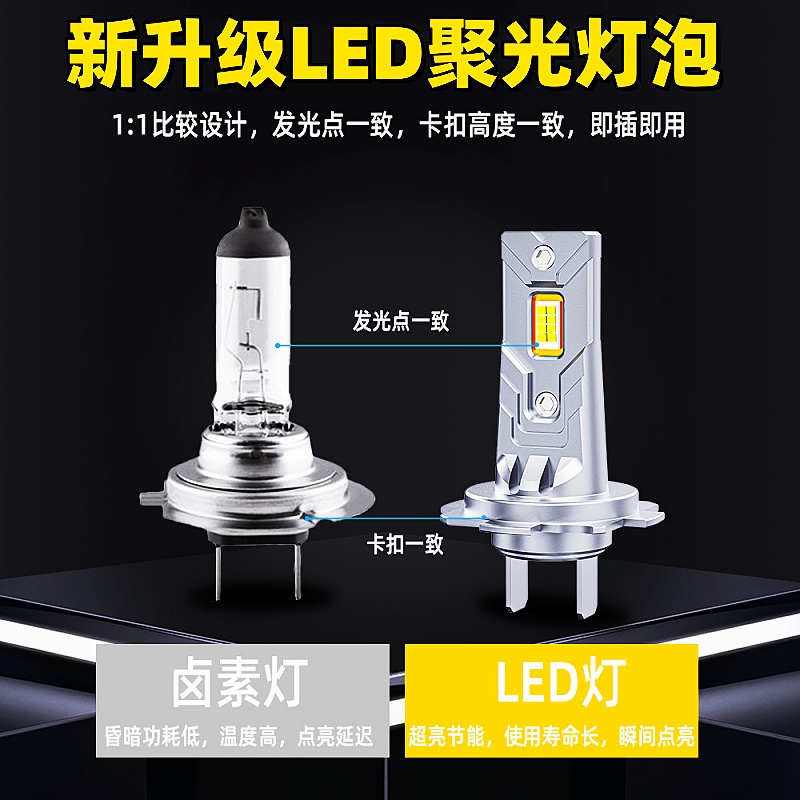 汽车LED大灯H7近光灯H1远光灯聚光H4远近一体9005激光车灯改装