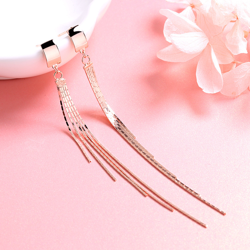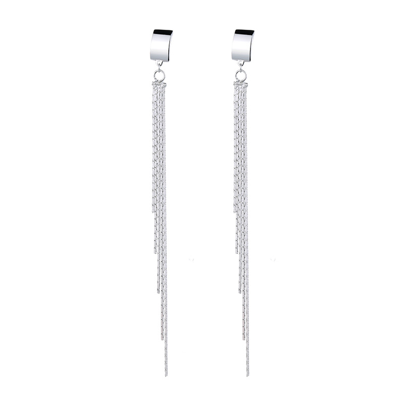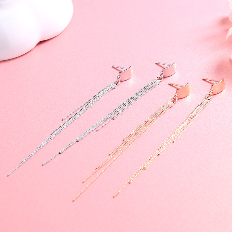 光面几何耳钉耳环女纯银小众潮流首饰女日韩轻奢流苏耳链耳饰