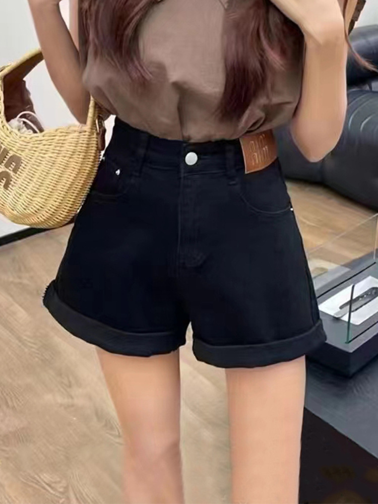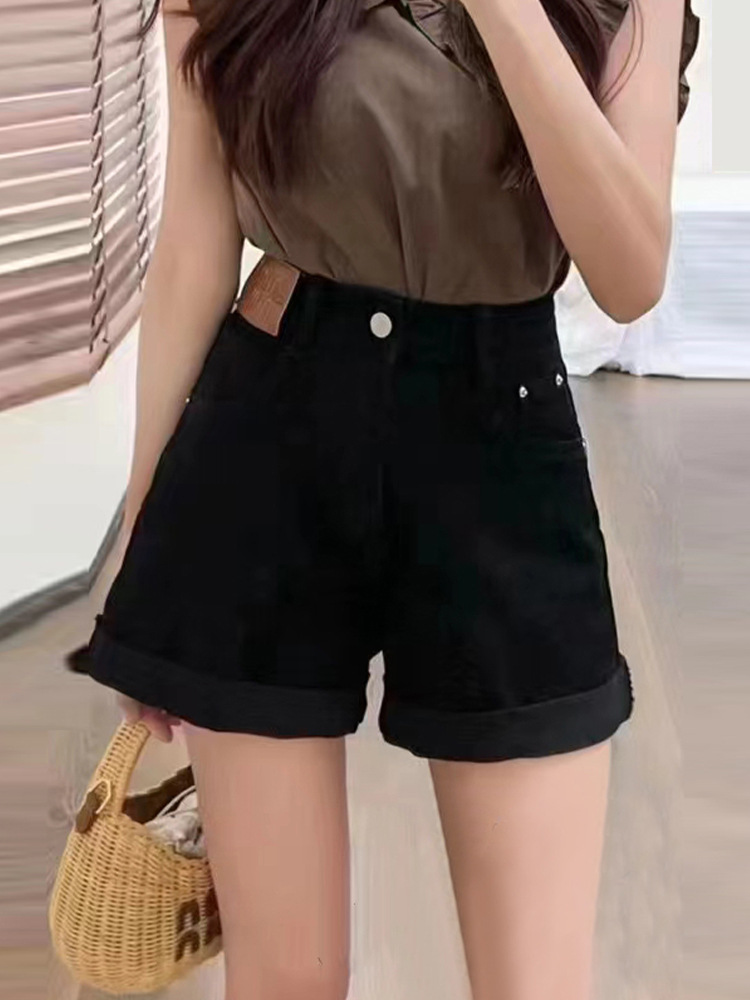 夏季新款黑色紧身牛仔短裤女高腰显瘦辣妹包臀热裤卷边裤子