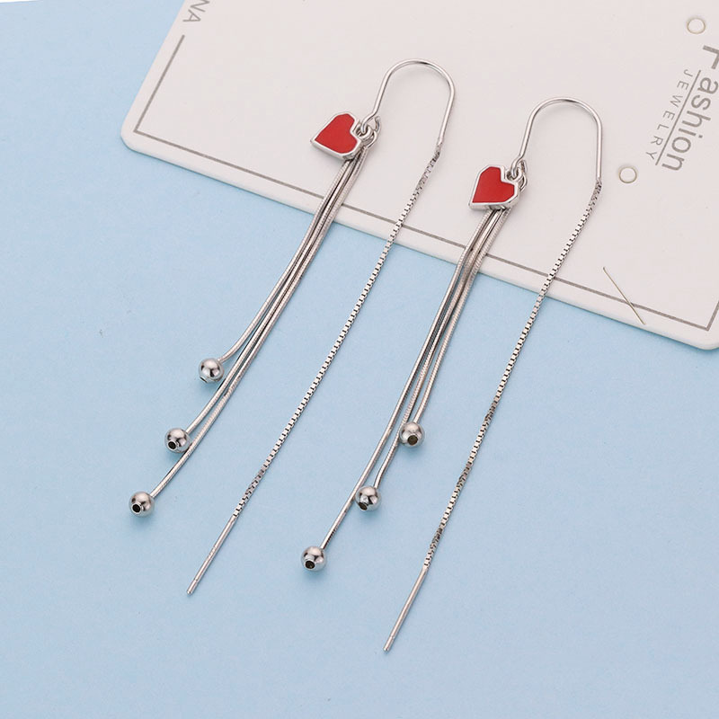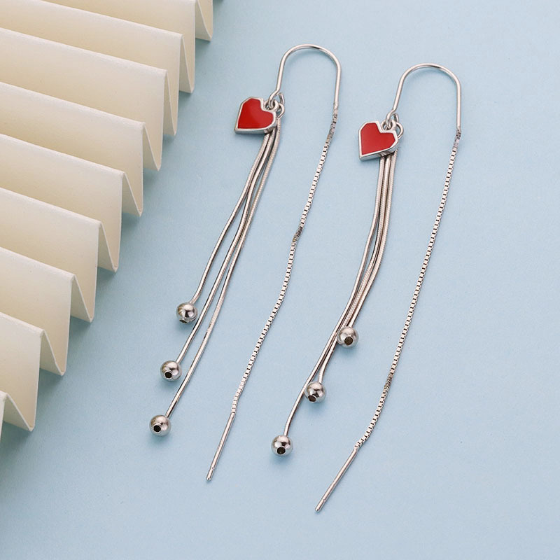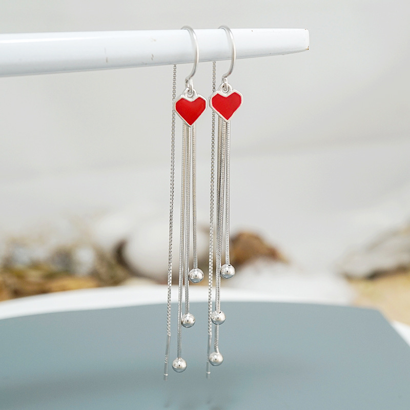 s925纯银爱心流苏耳环女 气质百搭心形长款耳线小清新耳饰