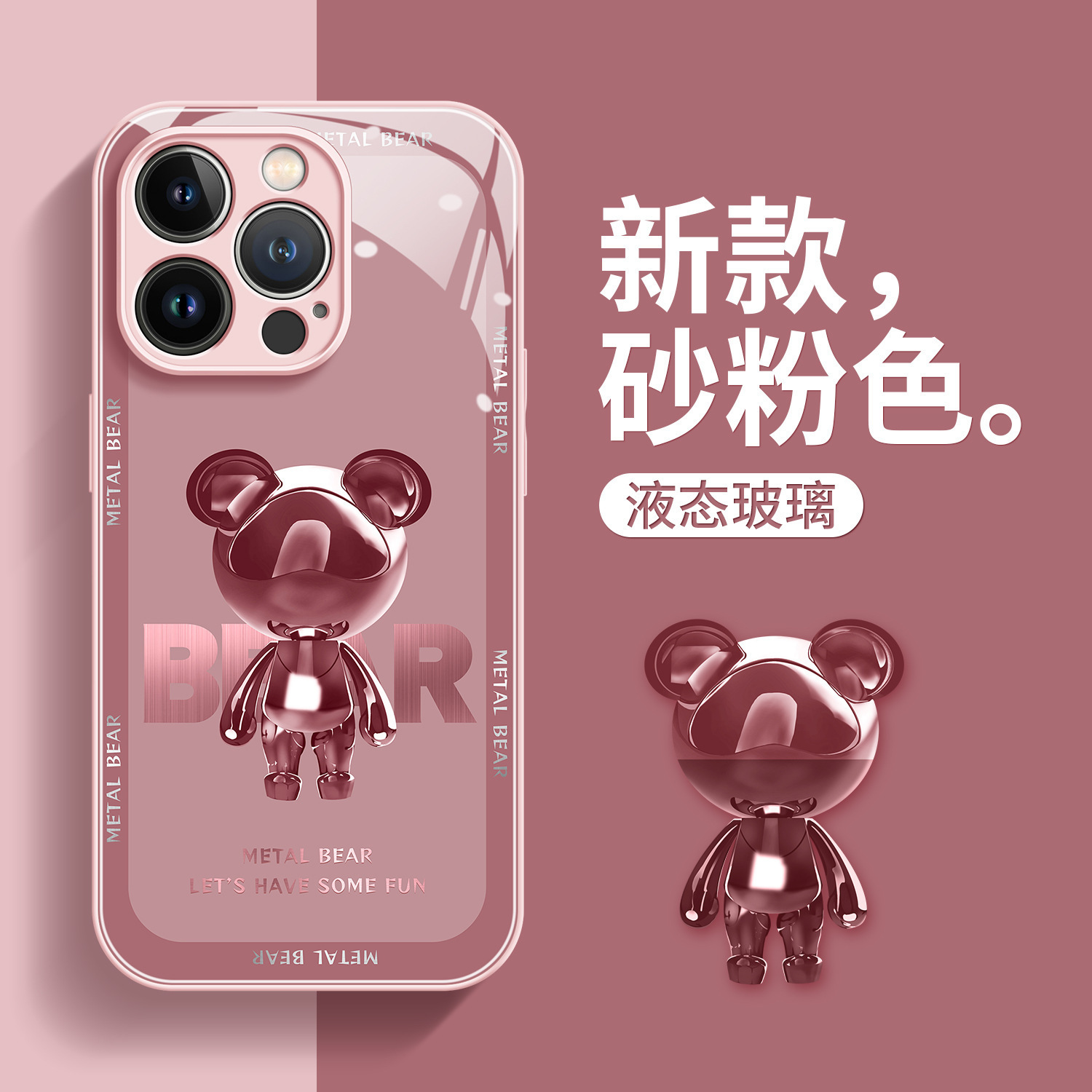 适用于苹果13手机壳新款高级感14pro玻璃12金属熊全包14promax防