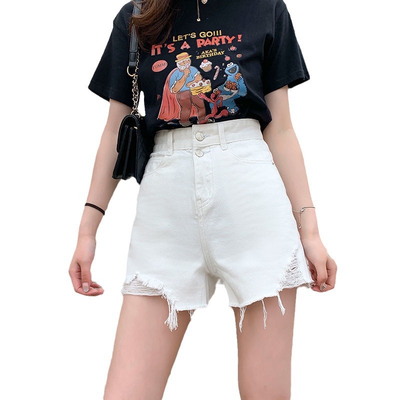 牛仔短裤女夏季新款高腰阔腿宽松ins韩版显瘦网红薄款a字热裤