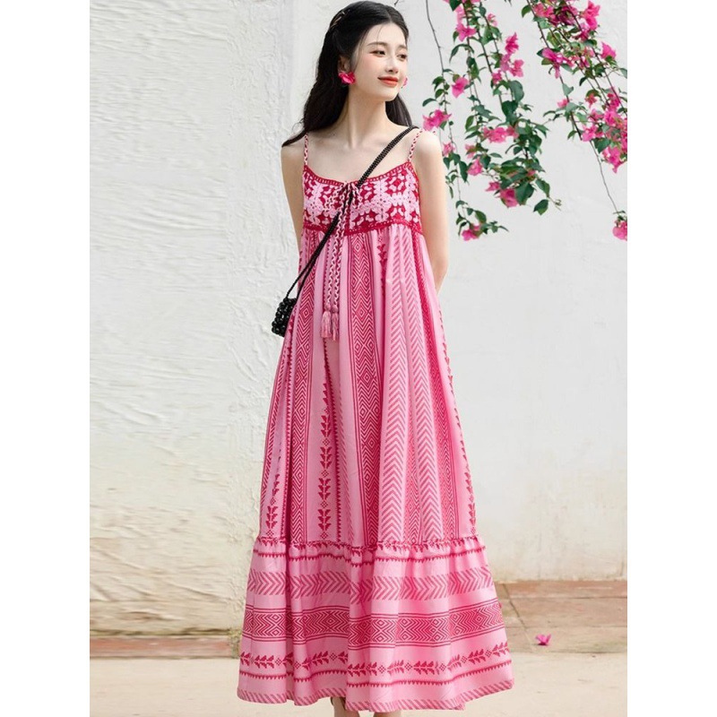 旅游穿搭女装海边度假长裙波西米亚连衣裙民族风吊带裙夏
