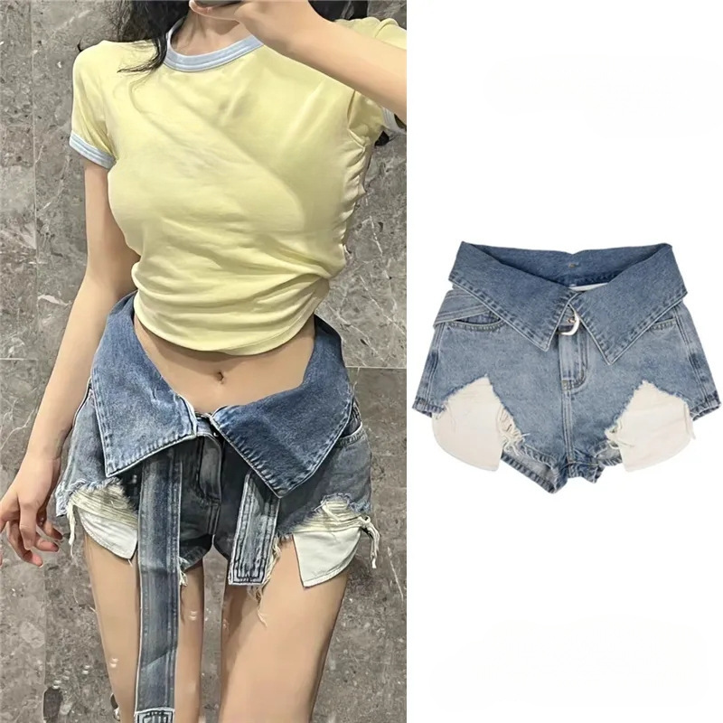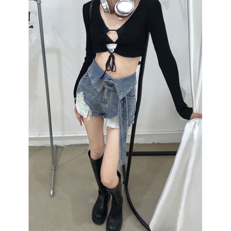 辣妹破洞牛仔裤女装春秋新款高腰设计感超短裤热裤夏季裤子潮