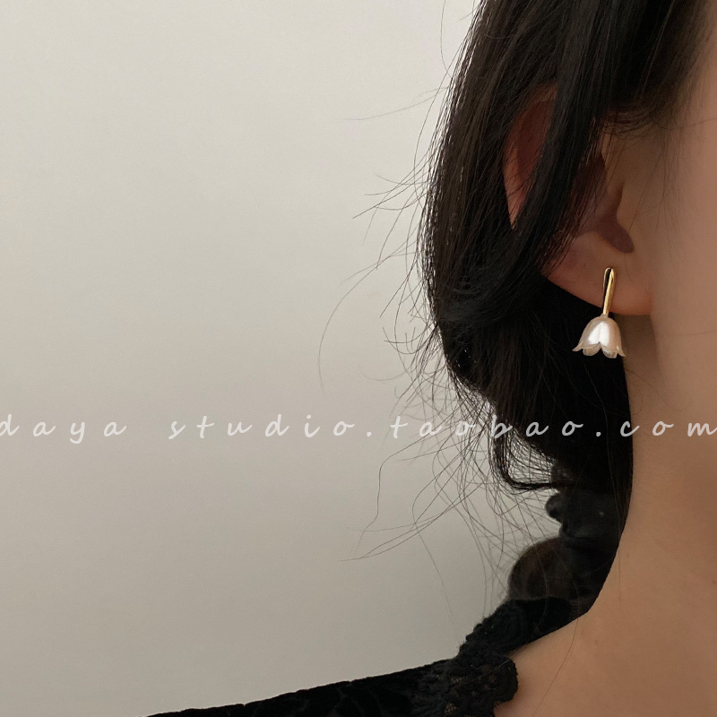 月下郁金香 925银法式气质花朵耳环迷你极简小众温柔优雅百搭耳钉