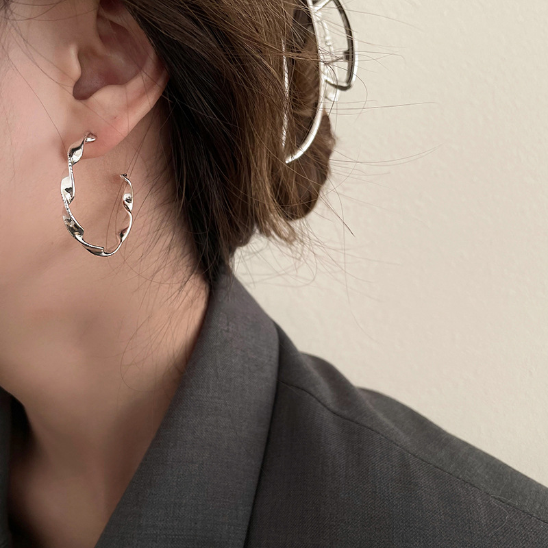 欧美冷淡风扭曲几何耳环小众个性耳钉时尚百搭耳圈高级感耳饰