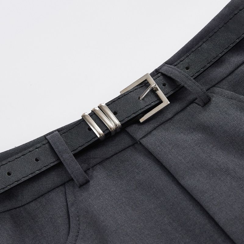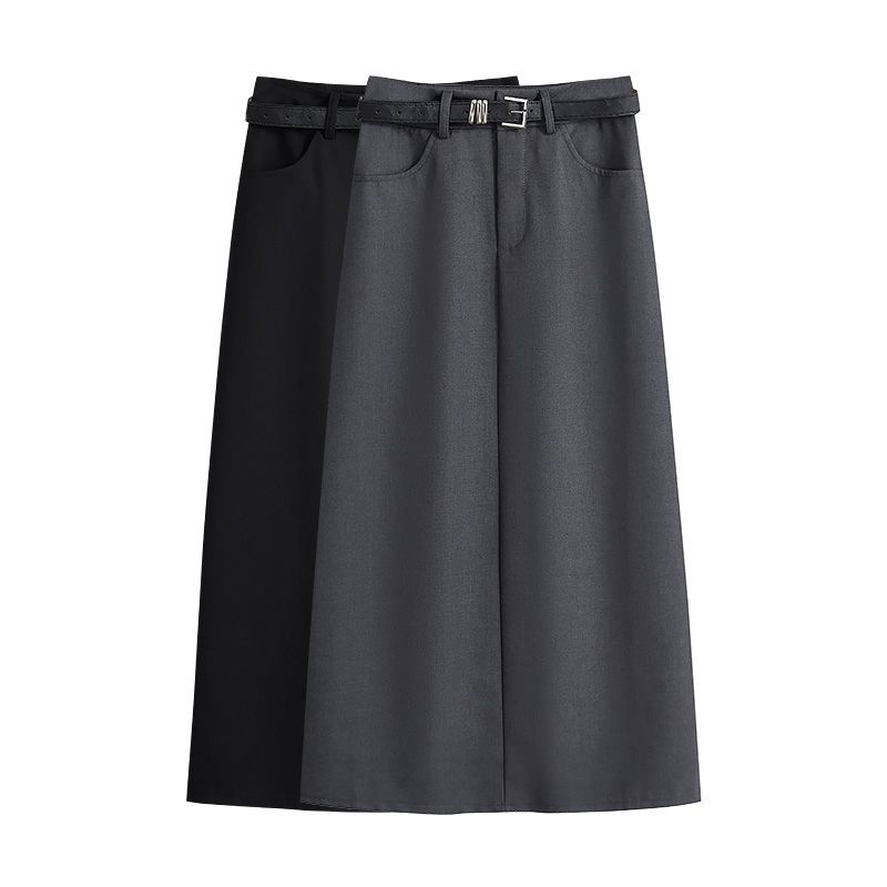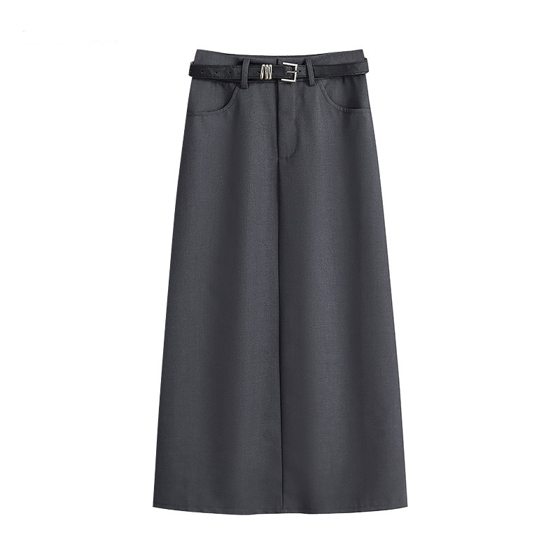 灰色高腰直筒西装半身裙春季新款字百搭显瘦包臀裙开叉中长款裙