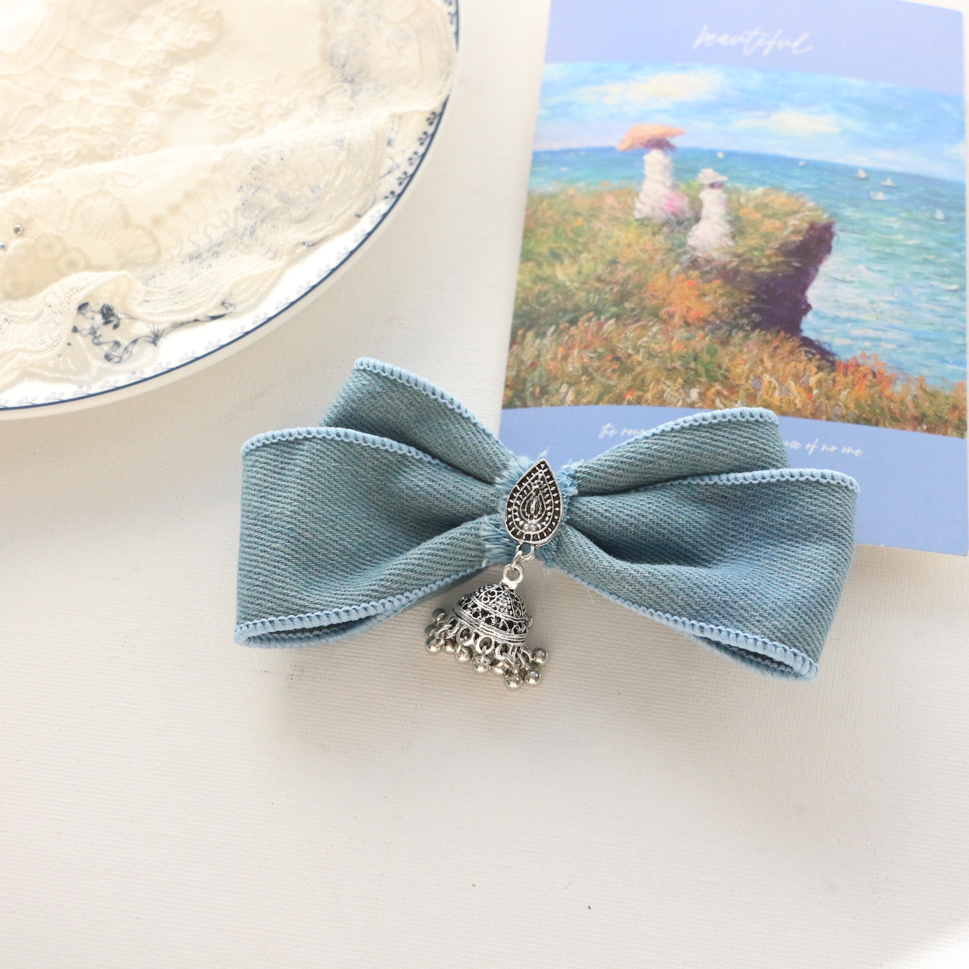 牛仔蝴蝶结发夹 流苏银铃铛2025新款可爱顶夹复古发夹发圈