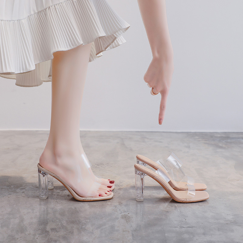 凉鞋女高跟鞋夏季新款时尚透明中跟水晶鞋凉拖粗跟外穿拖鞋