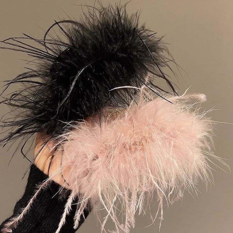 纯欲~羽毛抓夹ins风鸵鸟毛发夹后脑勺超仙发饰高级感夹子毛鲨鱼夹