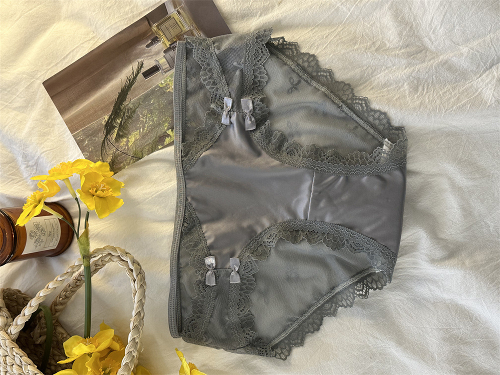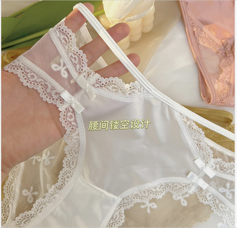 纯欲法式缎面镂空蕾丝网纱透气少女风三角裤性感冰丝春夏内裤女