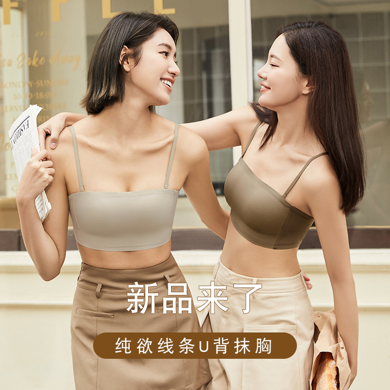 薄款内衣女性感u型无痕美背抹胸文胸无钢圈小胸聚拢调整型收副乳
