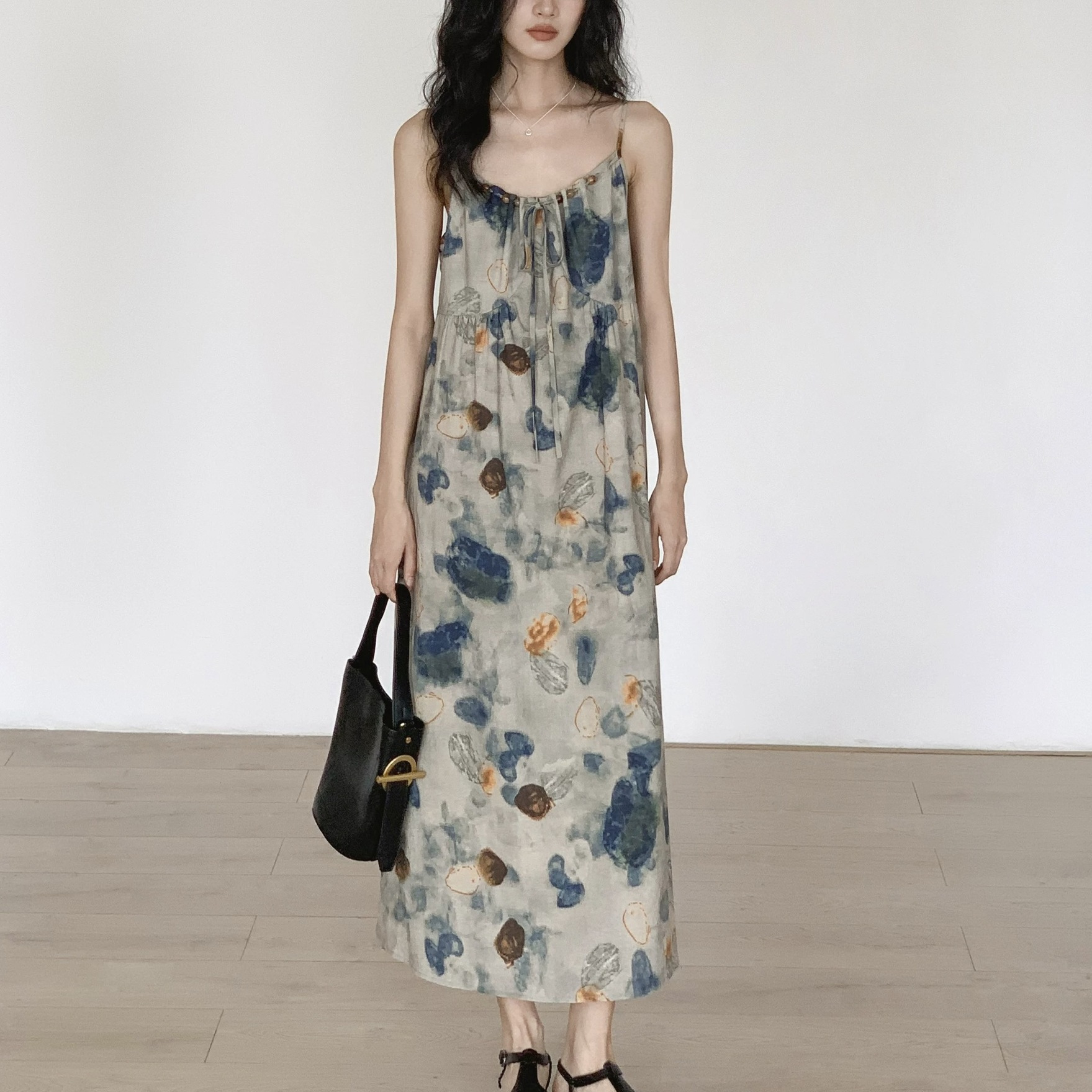 EM 新中式初春吊带连衣裙设计感小众法式吊带裙修身长款裙子