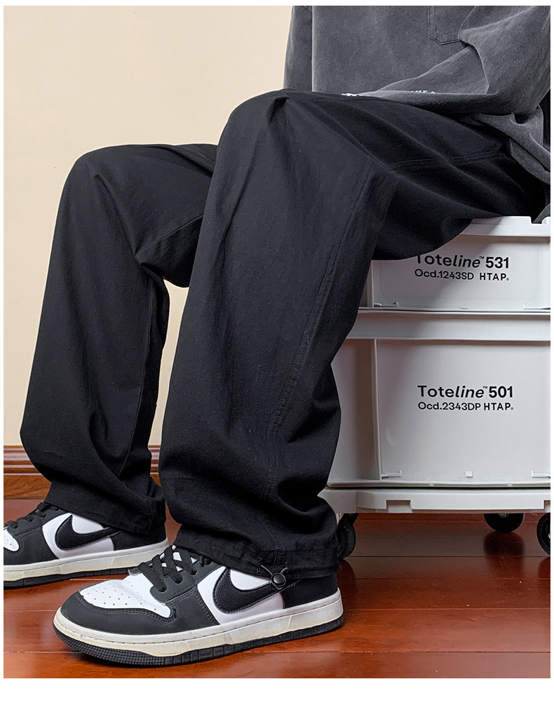春秋纯棉男士阔腿裤休闲潮牌运动裤宽松卫裤男高街长裤子