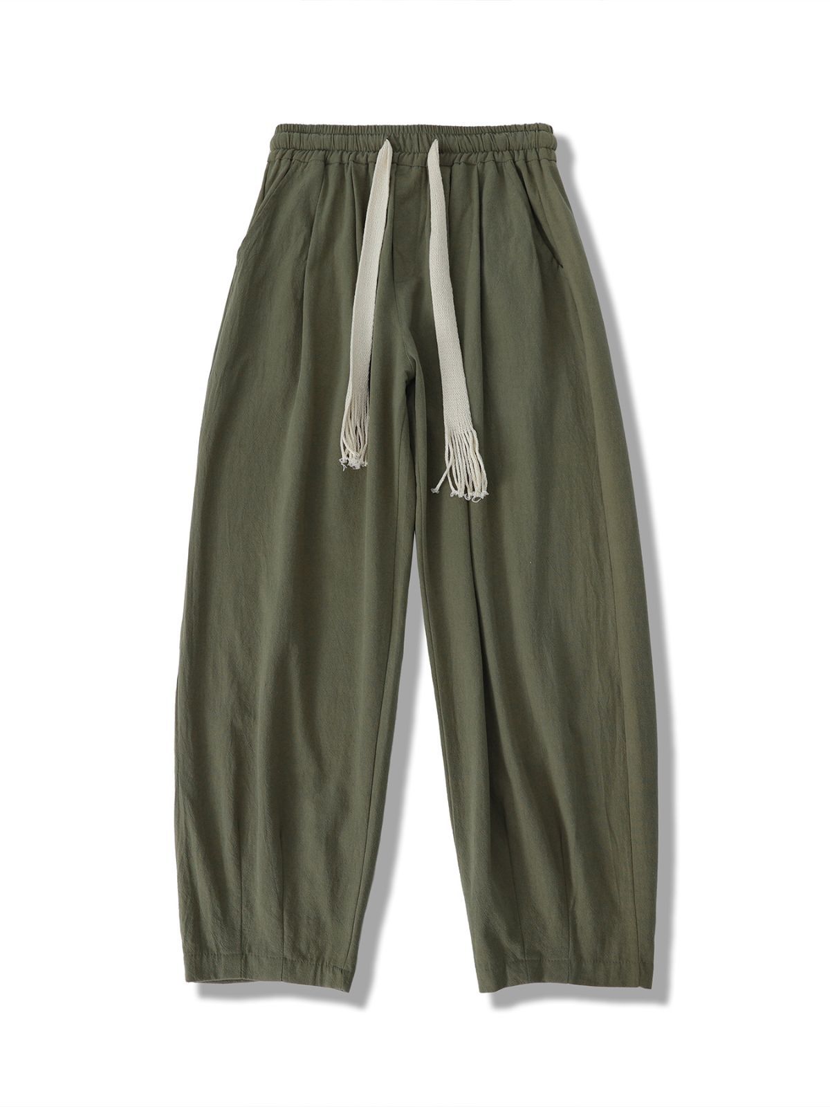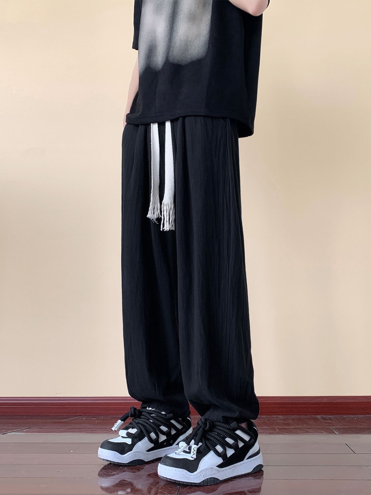 棉麻休闲裤男夏季薄款oversize阔腿宽松裤子美式高街亚麻直筒裤潮