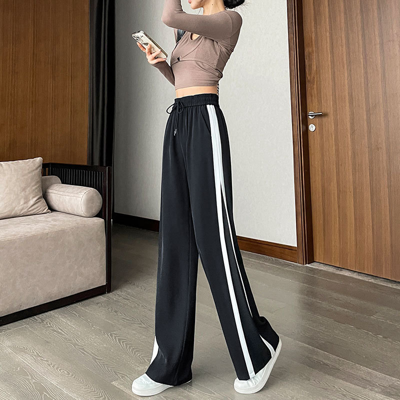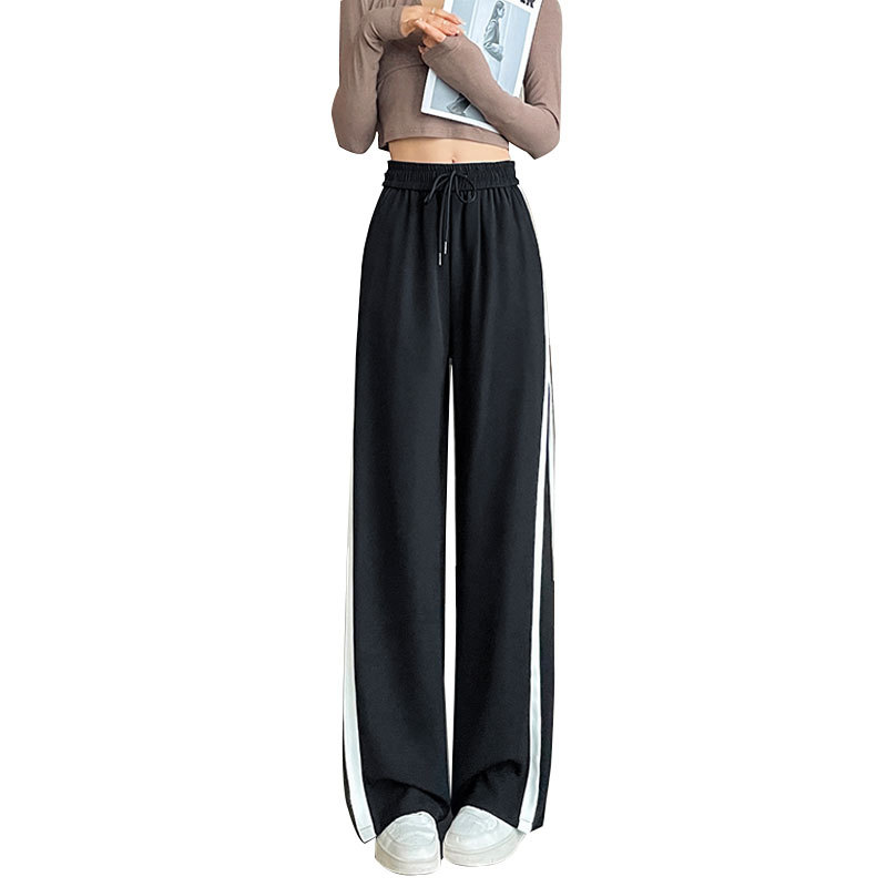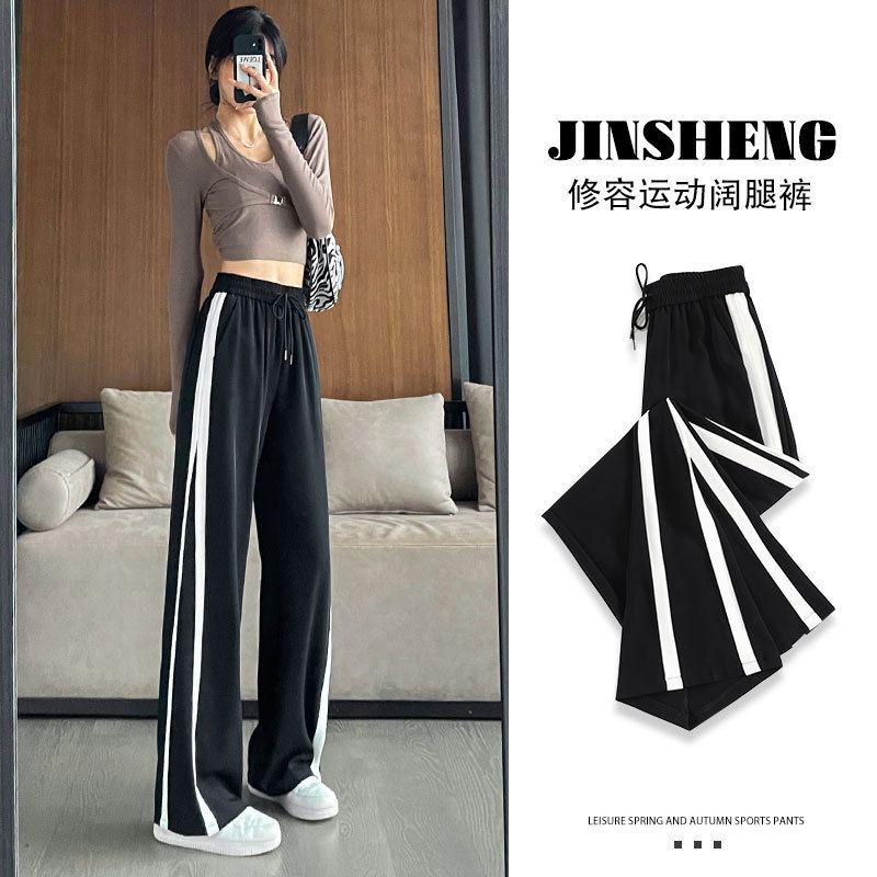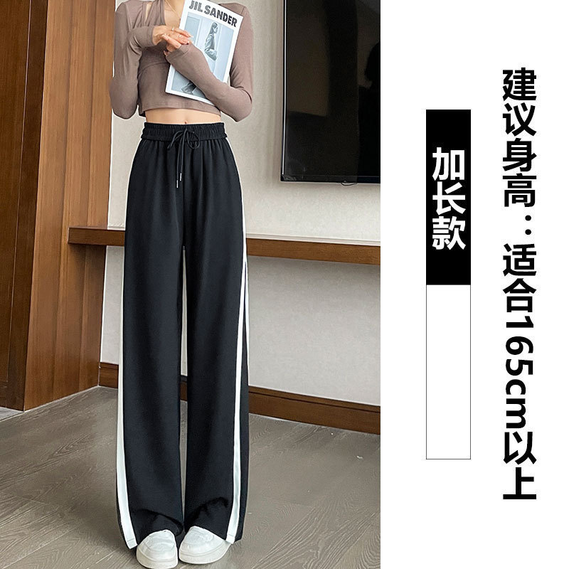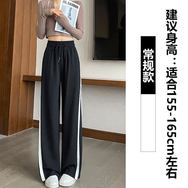 抽绳阔腿裤女裤子新款高腰直筒宽松黑色休闲春夏修容运动长裤