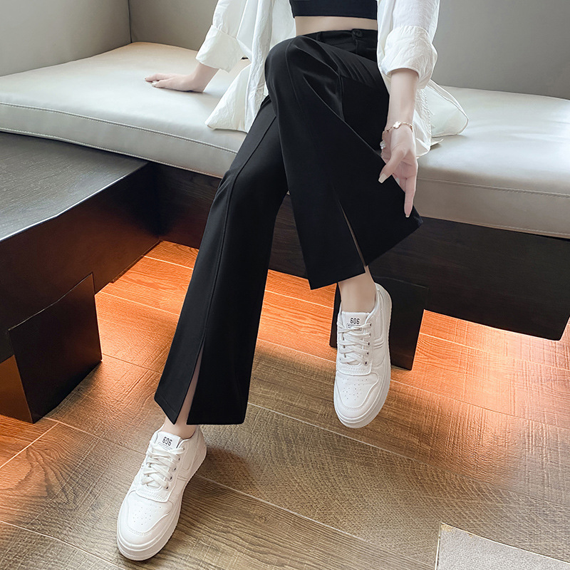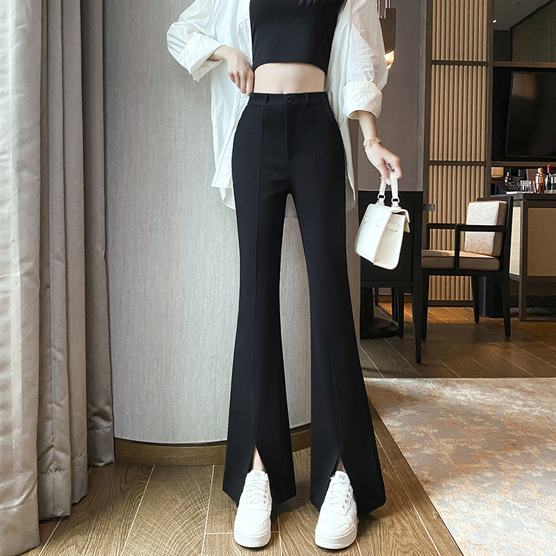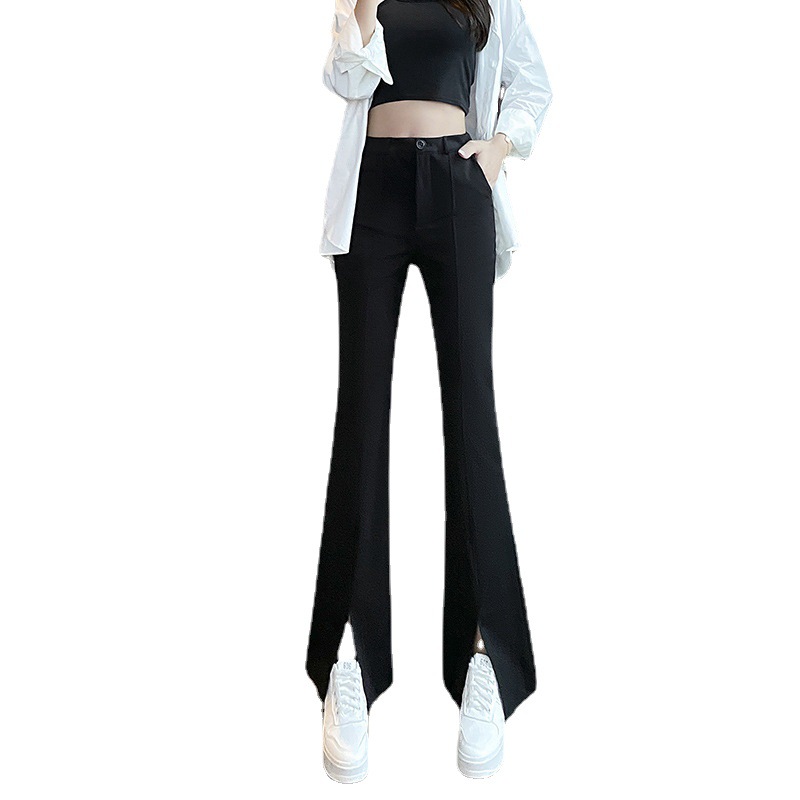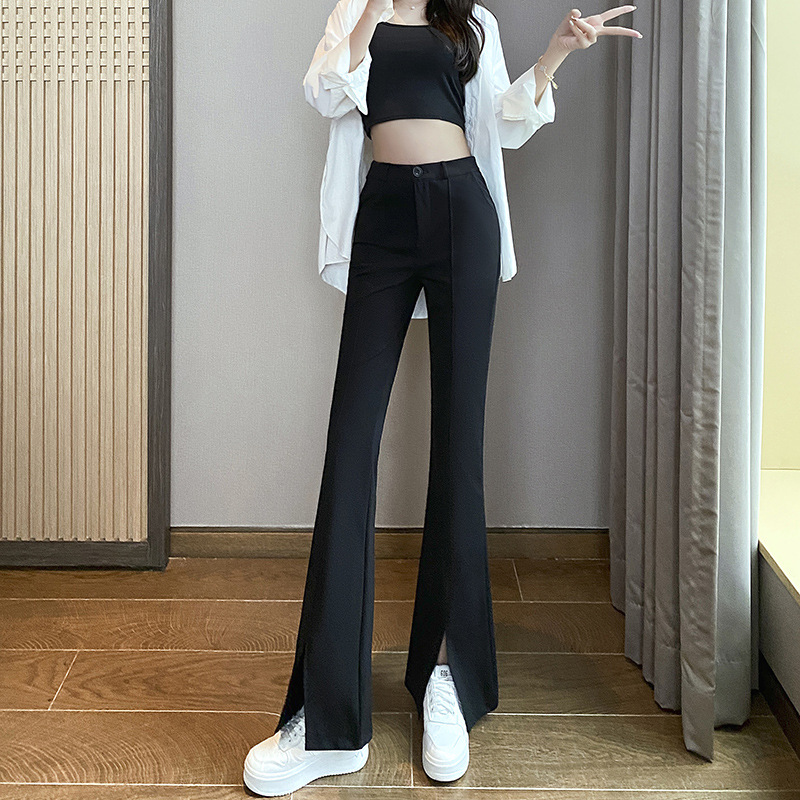 微喇开叉阔腿裤女春秋高腰垂坠感黑色喇叭裤休闲小个子拖地西装裤