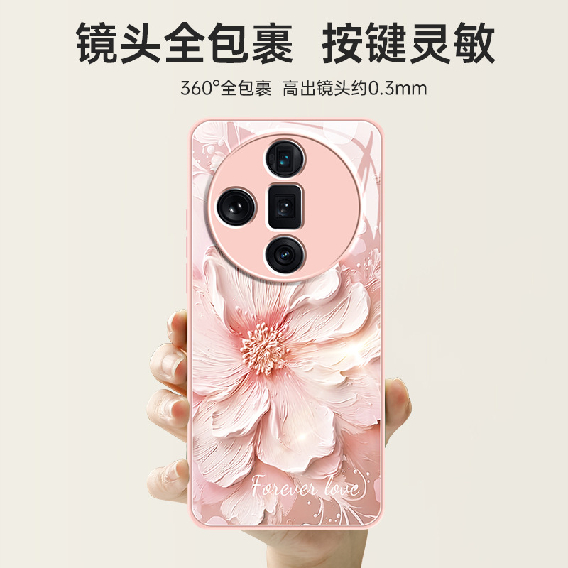 适用oppofindx7手机壳新款牡丹花findx7ultra全包镜头reno10pro套