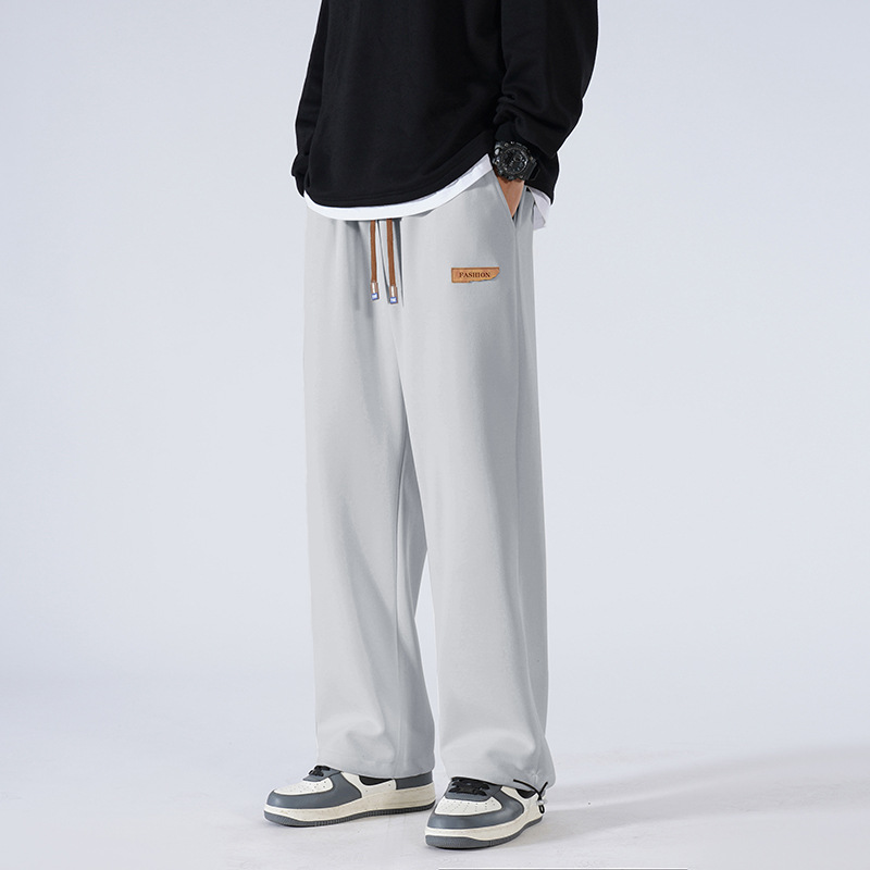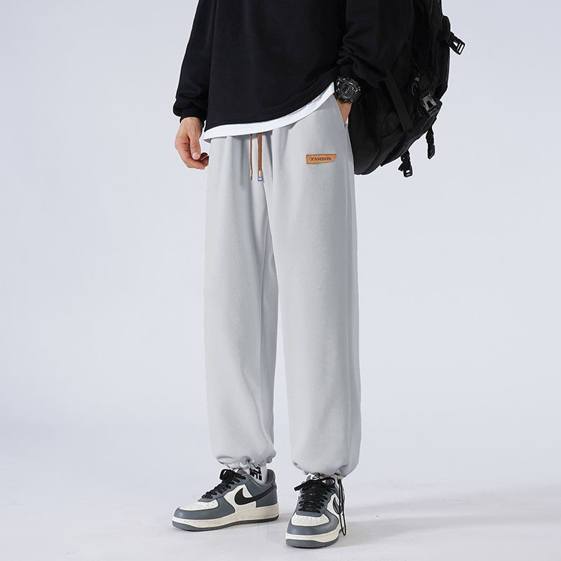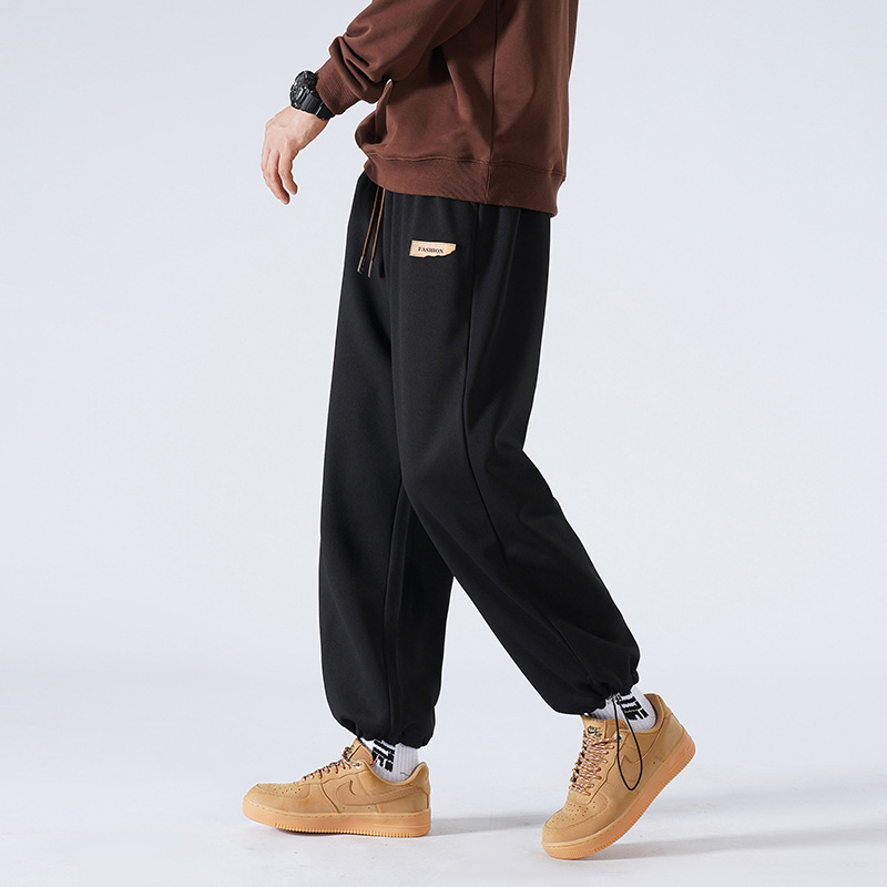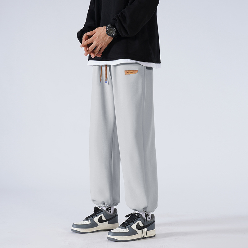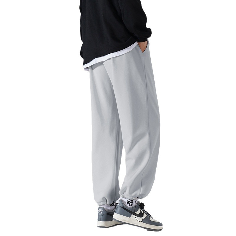 春季轻熟休闲直筒平口束脚宽松直筒束脚长裤男士超真柔休闲裤