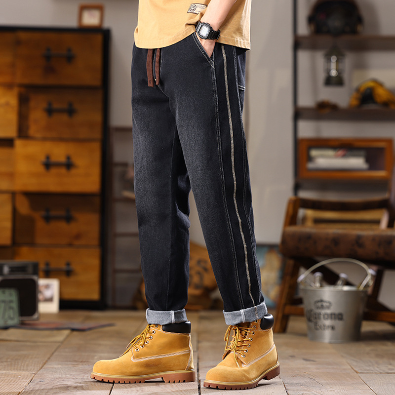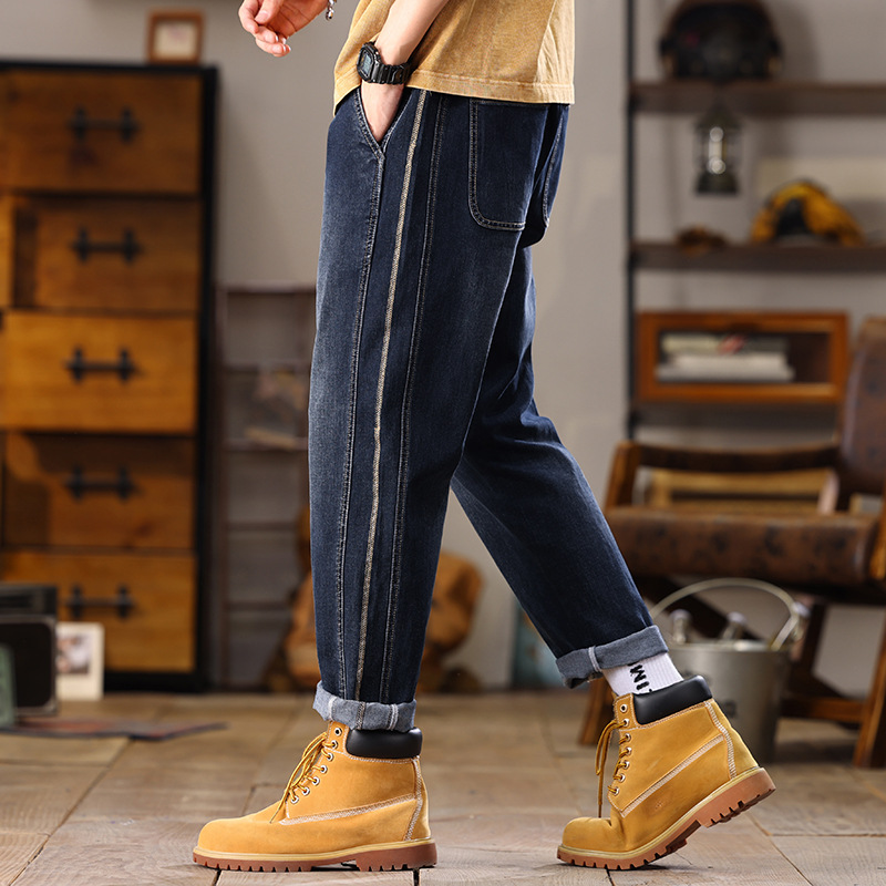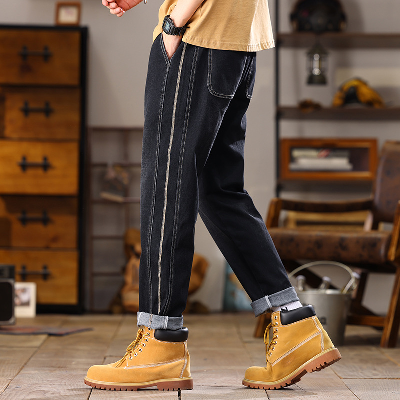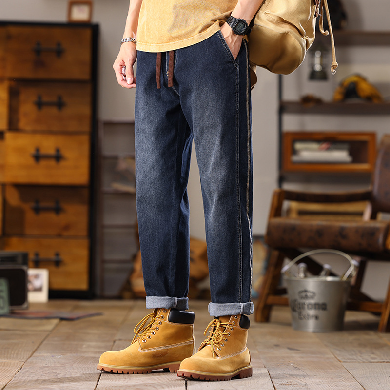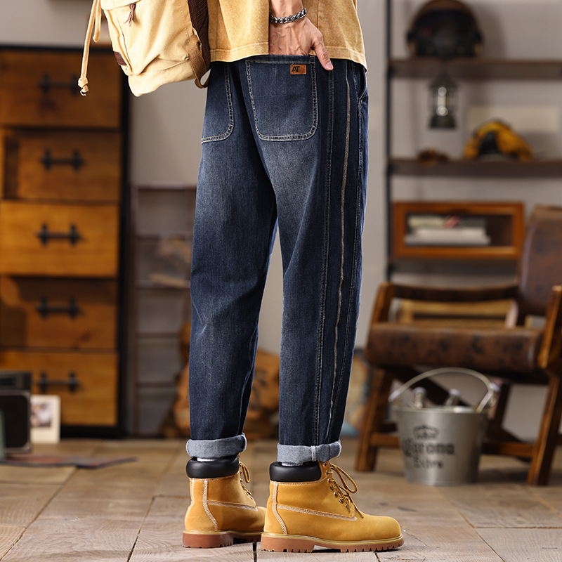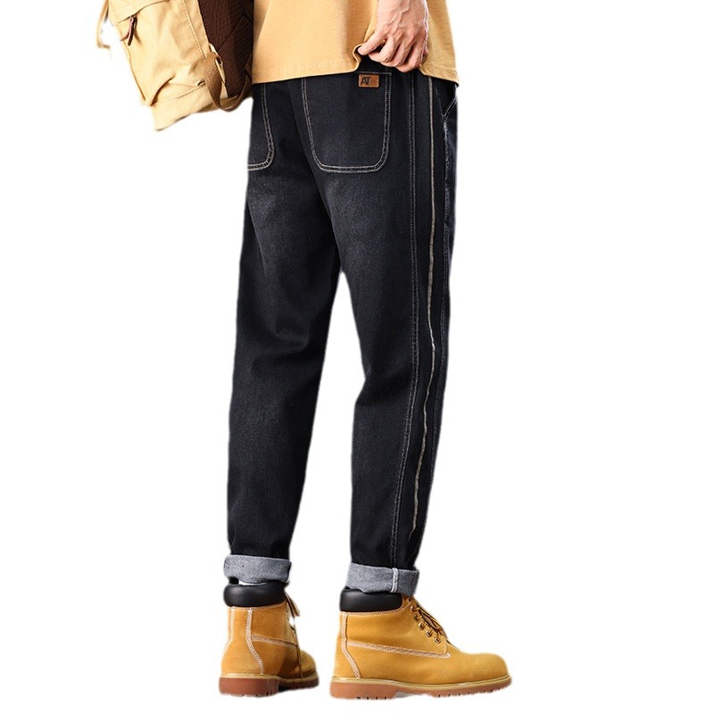 牛仔裤男士直筒宽松新款美式潮牌休闲弹力锥形痞帅工装长裤子