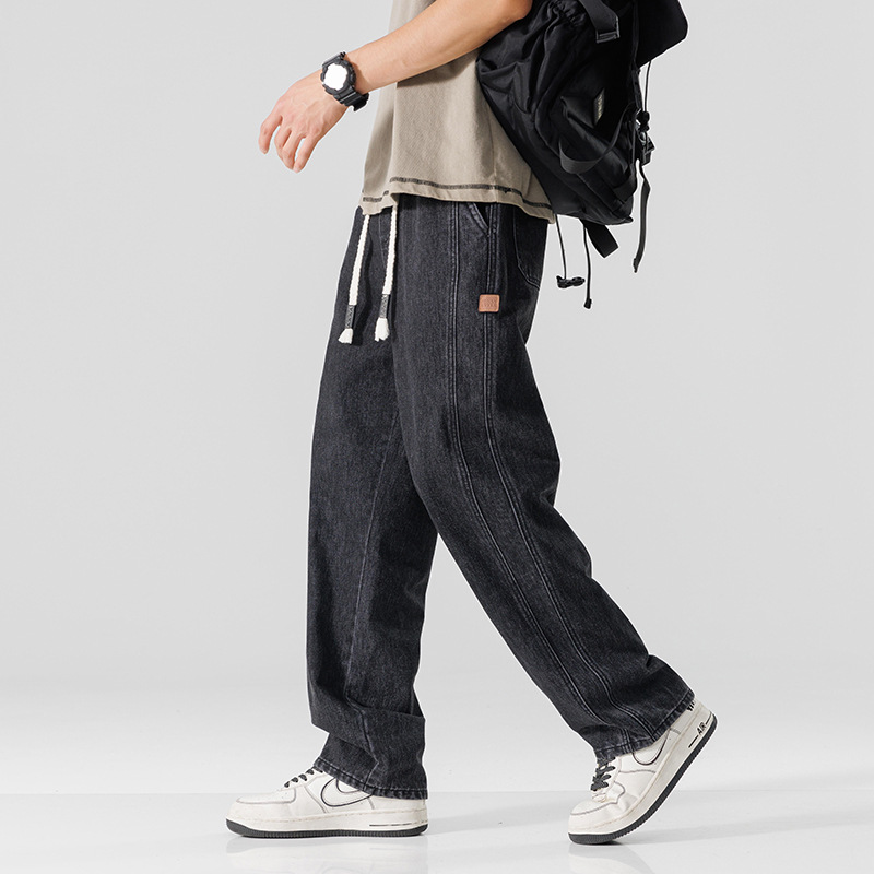 夏季新款牛仔裤宽松直筒美式高街休闲潮流港风春秋长裤子男生