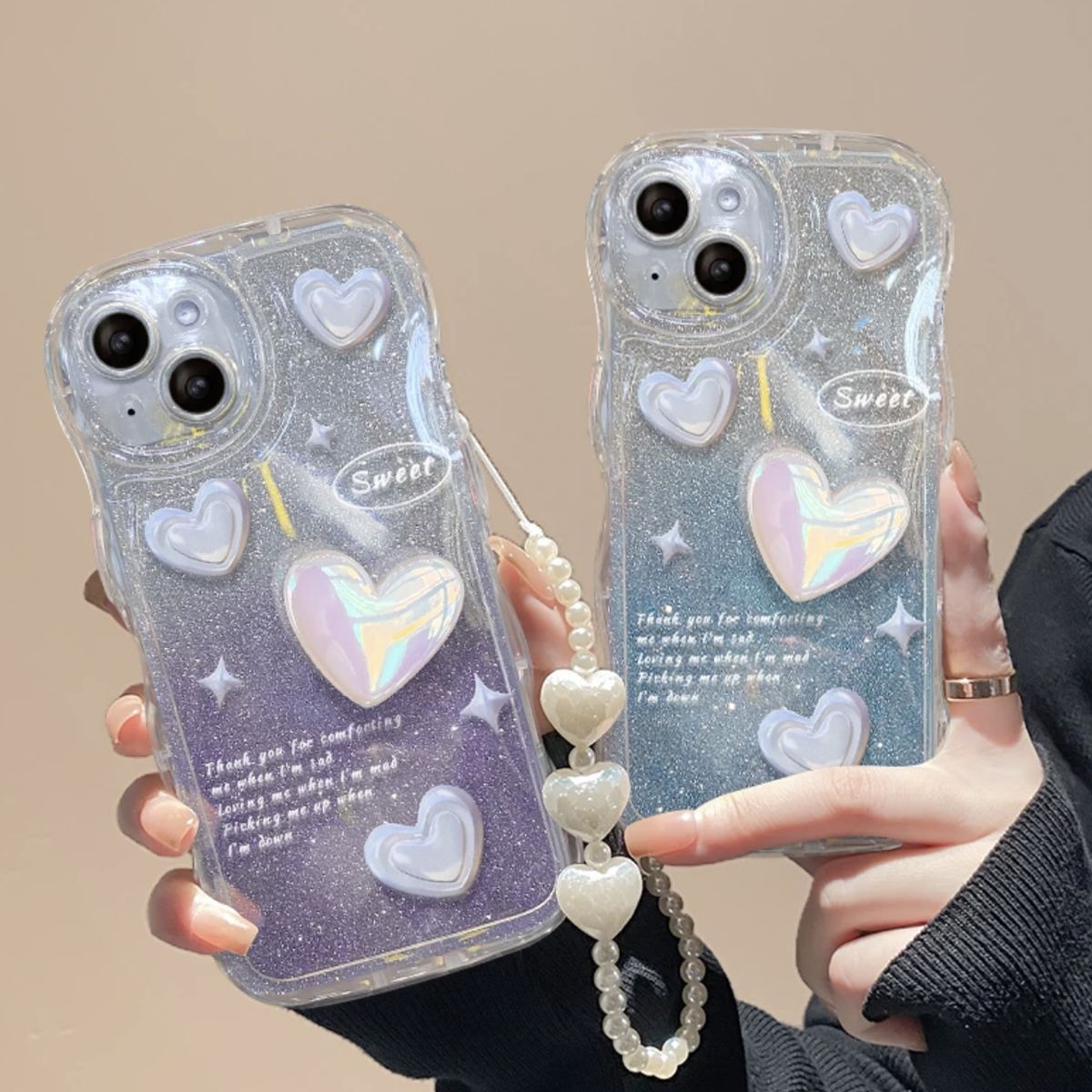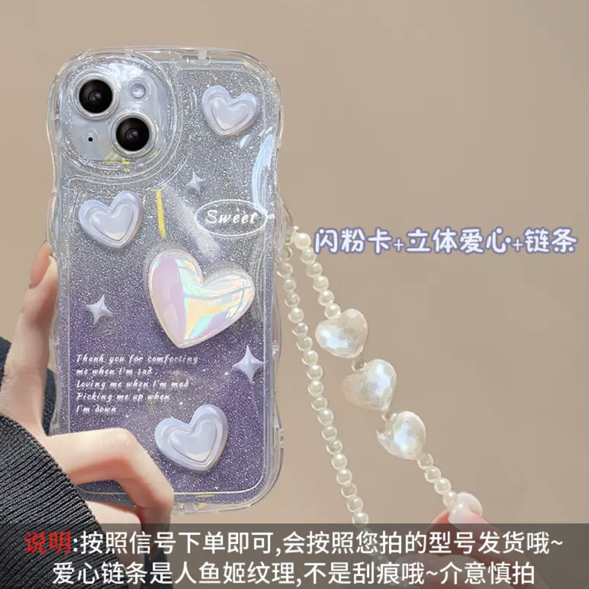 - GX7[波浪壳+渐变闪粉+手链]紫色立体爱心